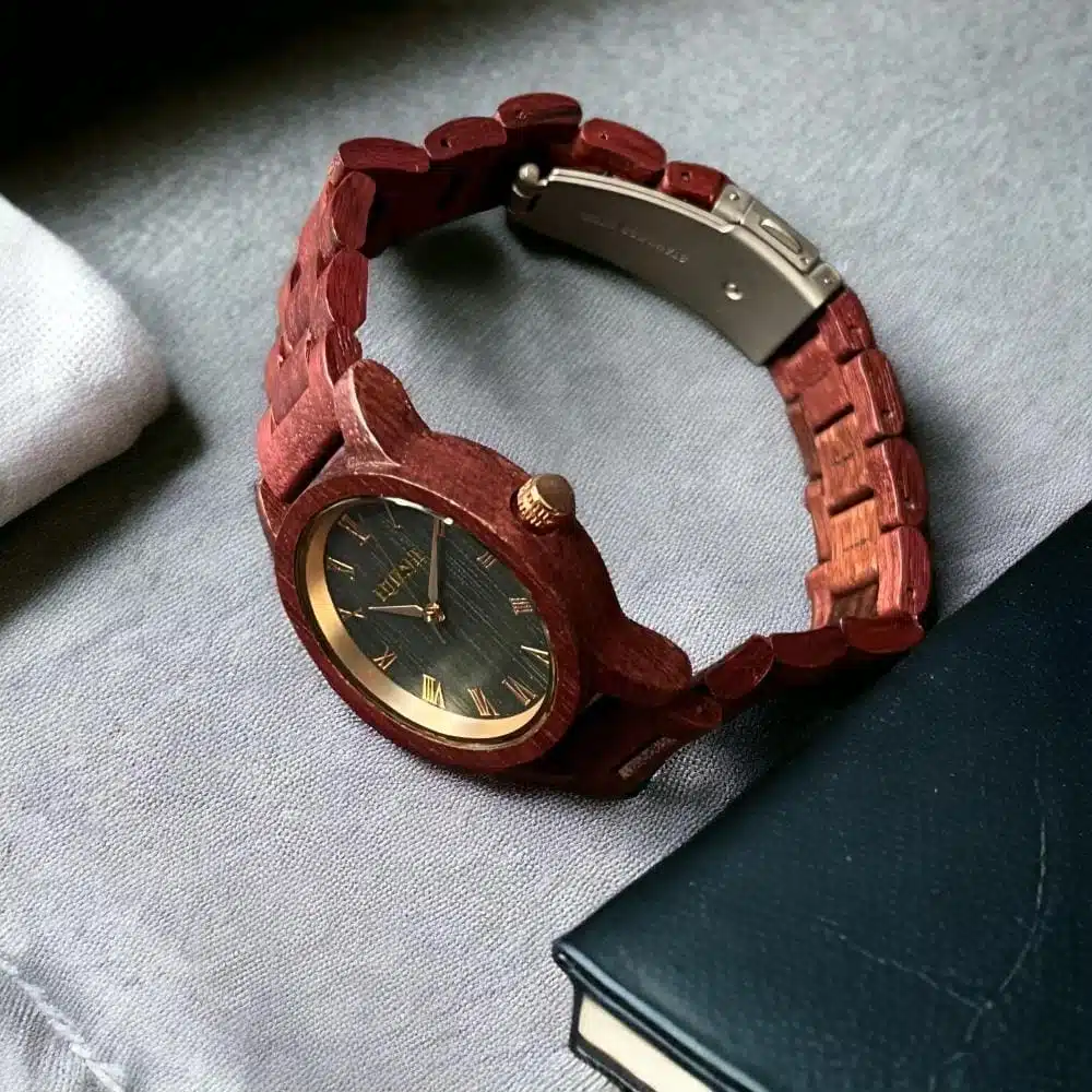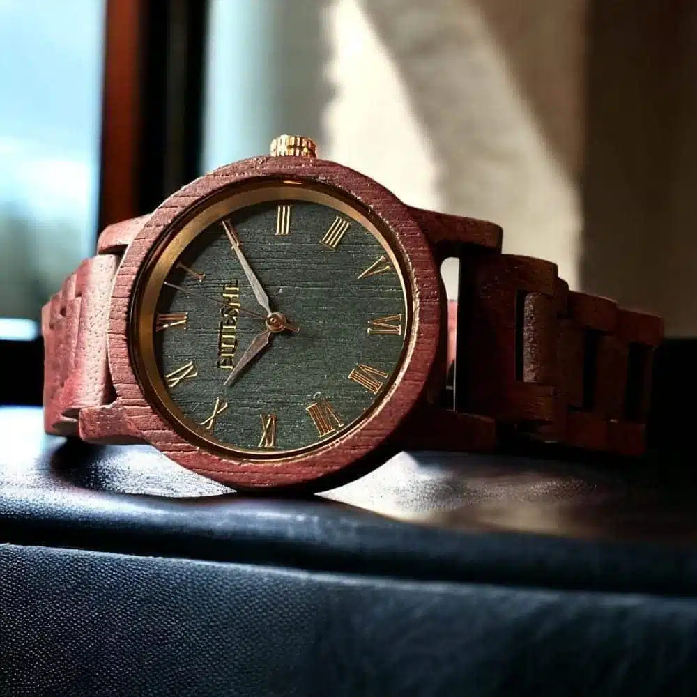 ساعة جرين رومان الخشبية تجمع هذه المجموعة النسائية ذات التصميم المميز بين الخشب الطبيعي وبين الميناء الخشبي الفاخر ، وتشتمل هذه الساعة محرك كوراتز ياباني الصنع وبأرقام رومانية . كما تتميز هذه المجموعة بأنها مصنوعة من خشب الورد وخشب الابانوس .