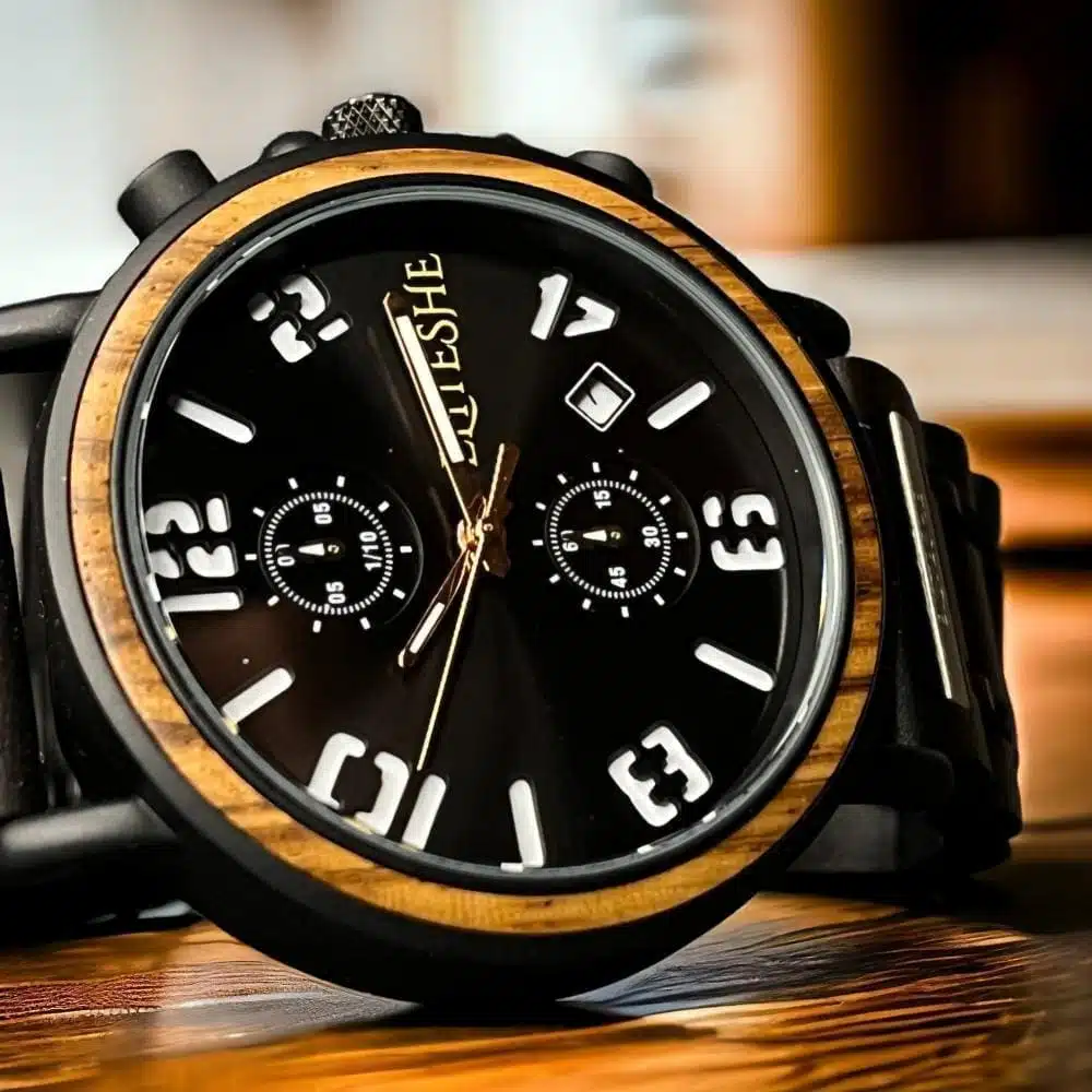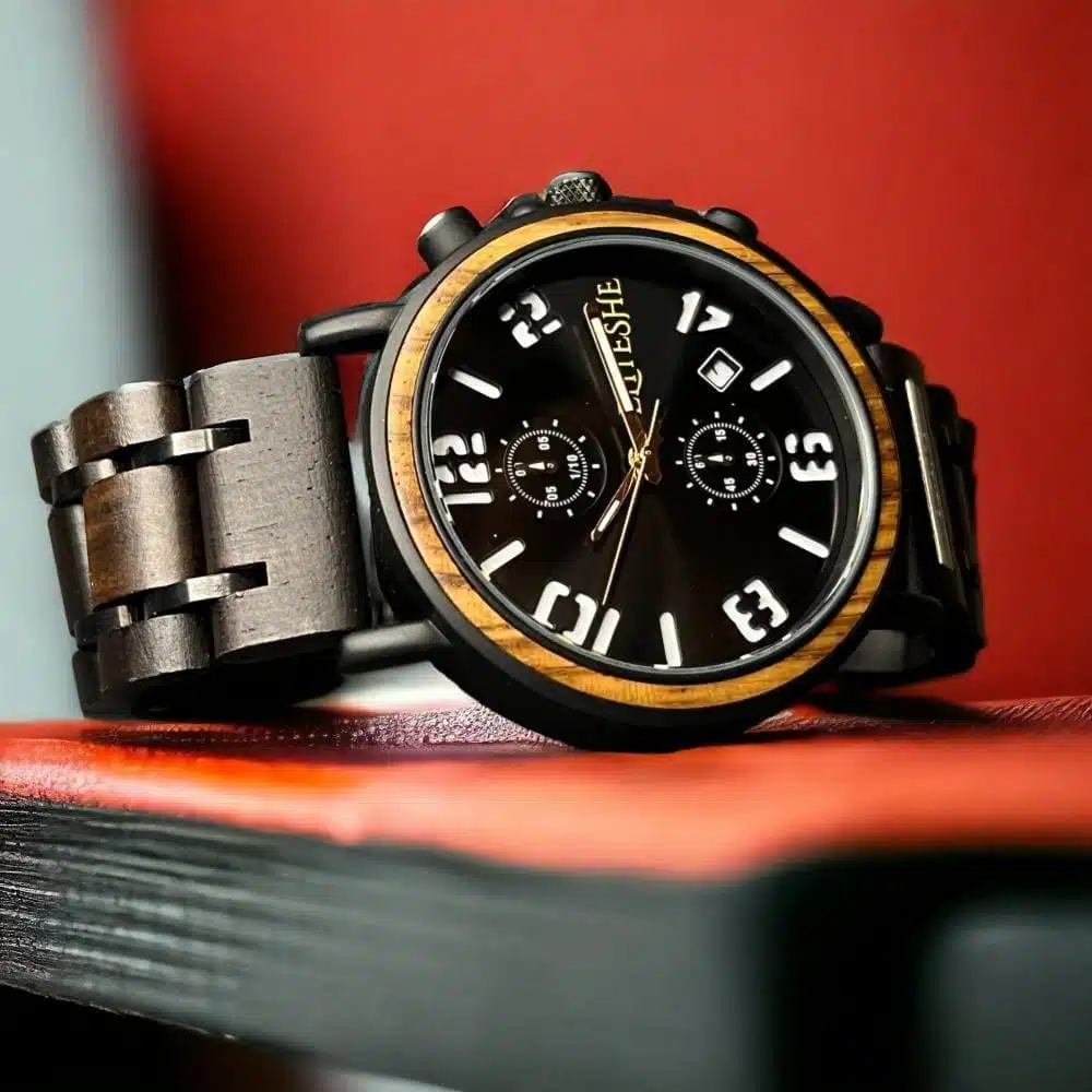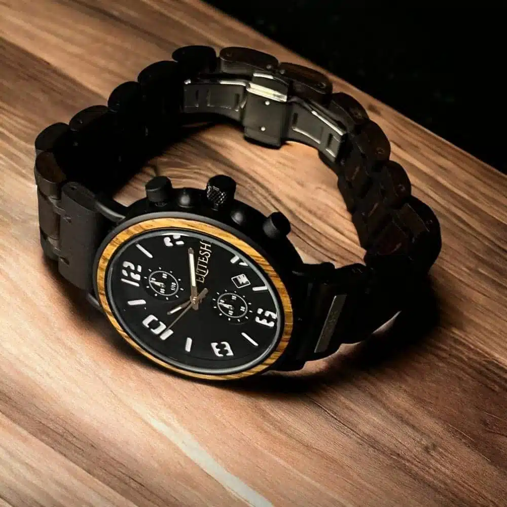 تتميز إصدارت “جنتل” الرجالية الخشبية بتصميم يجمع بين الساعة العصرية والساعة الكلاسيكية وبمحرك كرونوغراف فاخر ، وهي مصممة خصيصاً لتكتمل بها أناقتك ، تأتي ساعات “جنتل” بقرص دائري ذو مقاس 44mm وبحزام خشبي مدعم بفواصل فولاذية مما منحها القوة والمتانة لتكون مناسبة لك في جميع الأوقات