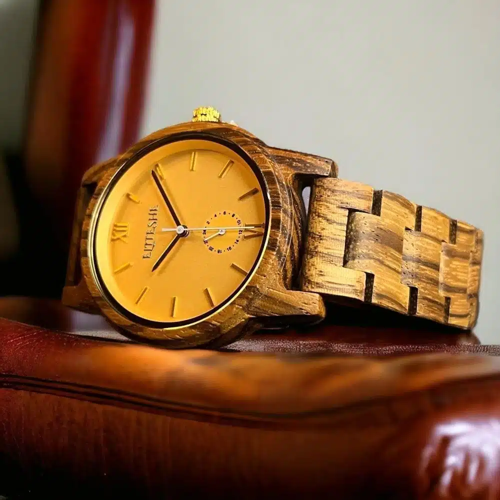 تعمل ساعة قولد كلاسيك وود الخشبية بآلية حركة دقيقة وموثوقة، مما يضمن لك الوقت الصحيح في كل مرة. كما تتميز بمقاومتها للماء والخدش، مما يجعلها مثالية للاستخدام اليومي وتدوم لفترة طويلة.
