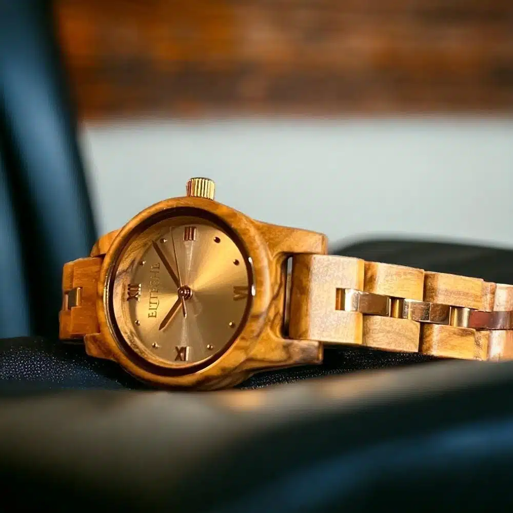 تعتبر ساعة وايت مون الخشبية إحدى الساعات النسائية ذات التصميم الأنيق والفريد. تتميز هذه الساعة بمقاس قرص يبلغ 27 ملم وسماكة تبلغ 10 ملم، مما يجعلها مناسبة للنساء اللواتي يفضلن الساعات ذات الحجم الصغير والرقيق.