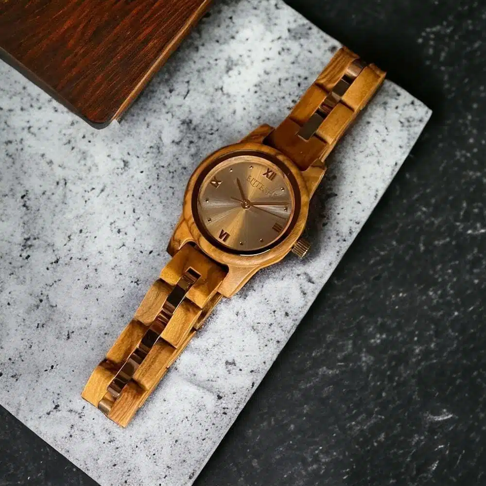 احصلي على ساعة وايت مون الخشبية الآن واستمتعي بالمظهر الرائع والجودة العالية التي تقدمها.