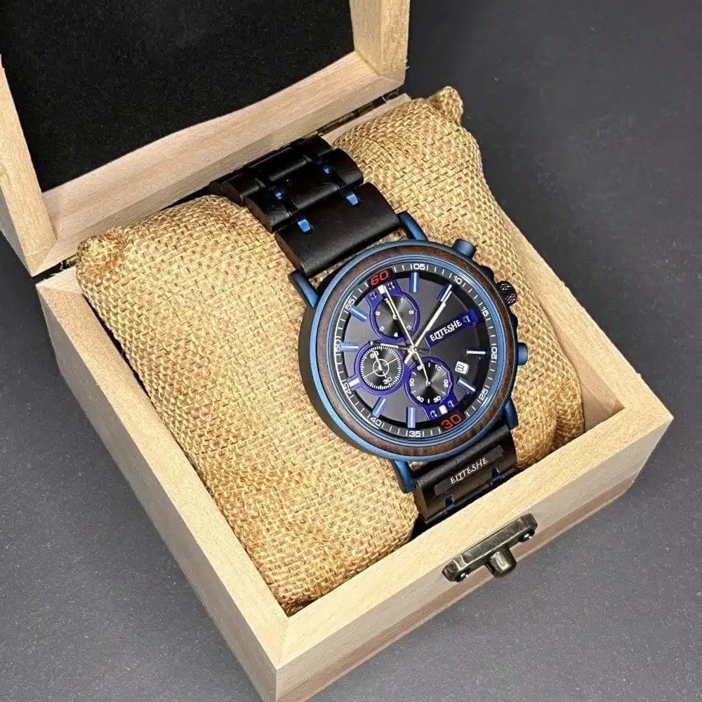 The Gentlemen’s Wooden Gentleman’s Edition features a design that combines a modern watch with a classic watch and a luxurious chronograph engine, and is specially designed to complement your elegance, Gentle Watches come with a 44mm round dial and a wooden strap supported by steel spacers, giving it strength and durability to be suitable for you at all times.