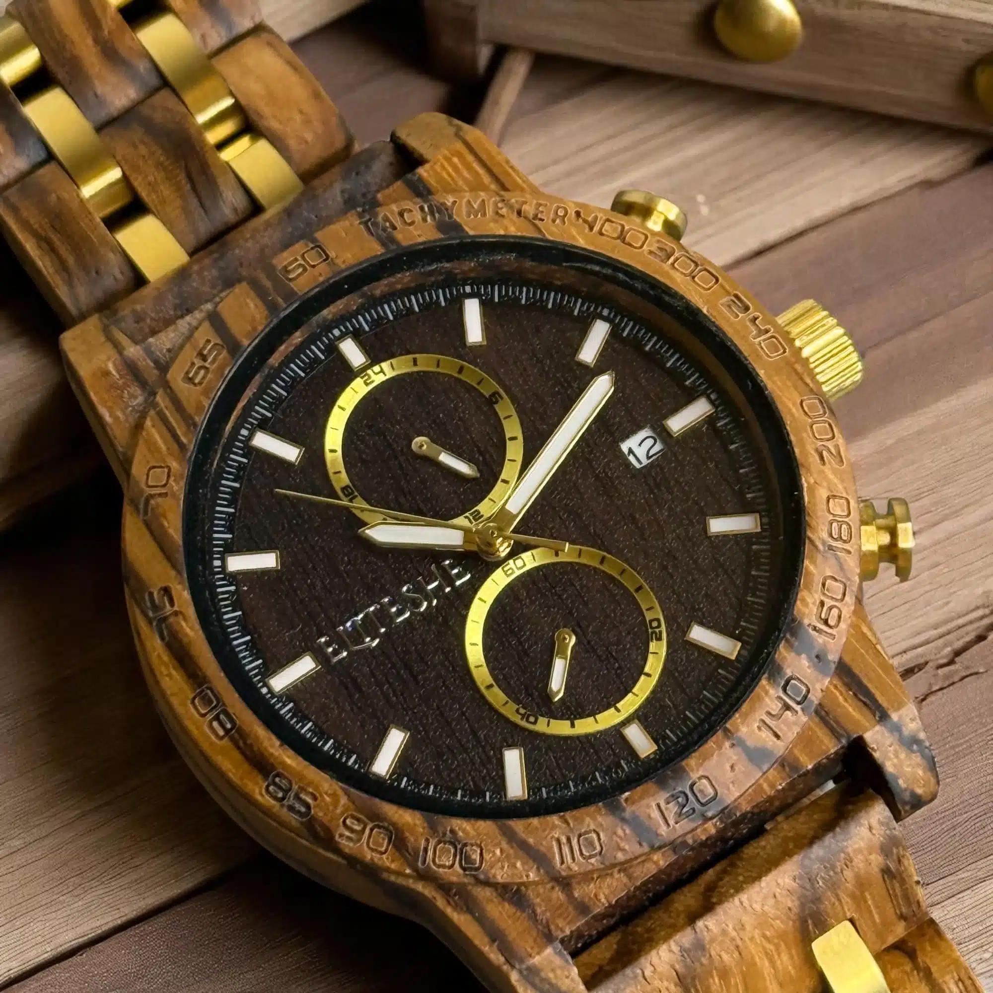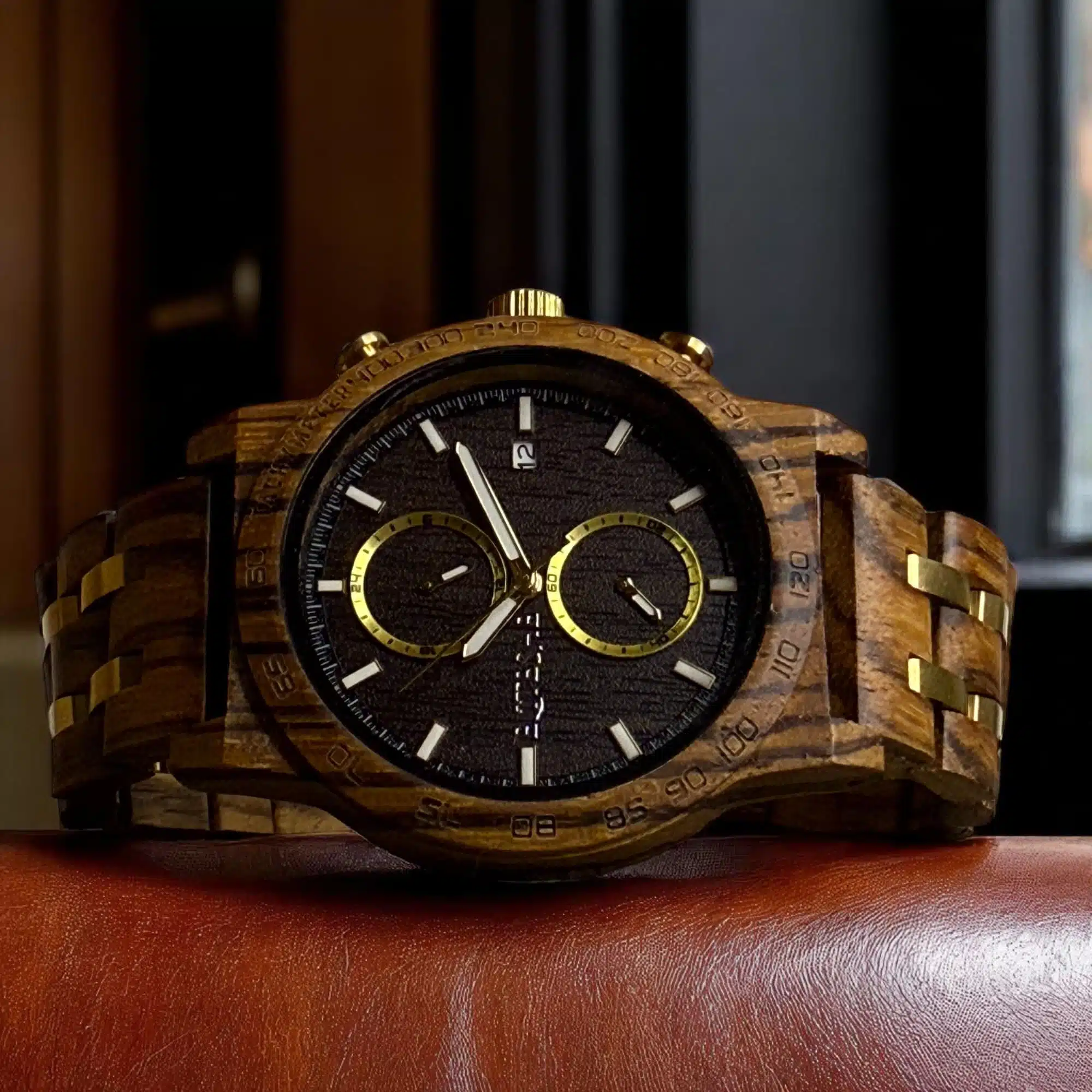 Watch Men’s Wooden Zebra Winds – Wooden elegance with precision chronograph