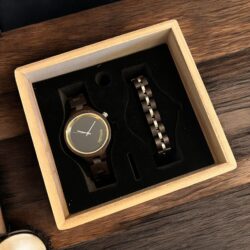 ساعة خشبية وود كلاسيك سكوير مع إسورة خشب نسائية