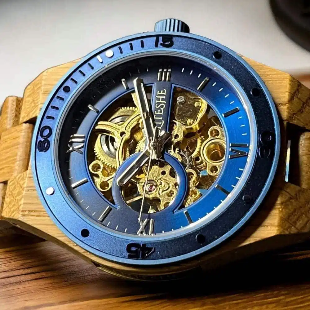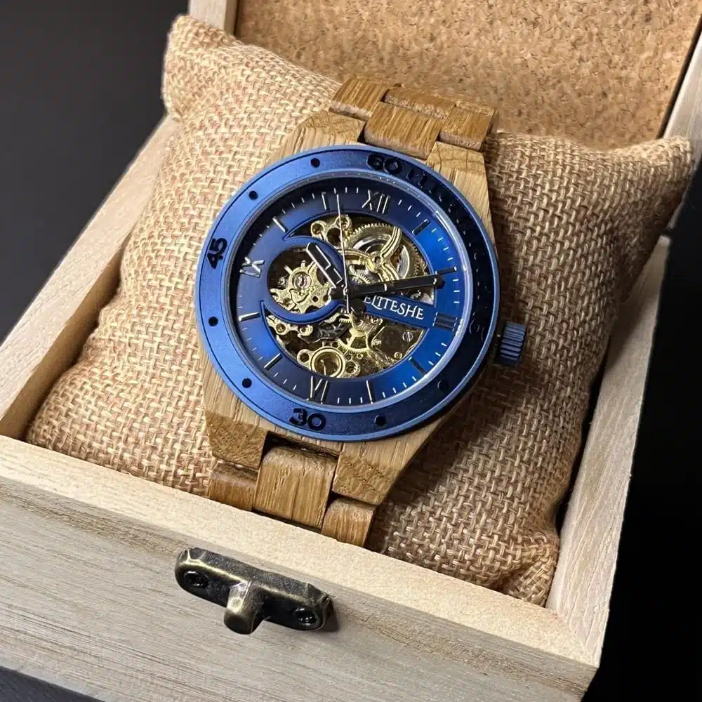 ساعة أوتو لايت روك مان الخشبية وهي أحد إصدارت “روك مان” الرجالية الخشبية والتي تتميز بتصميم يجمع بين الساعة العصرية والساعة الكلاسيكية وتأتي بمحرك أوتوماتيكي المقاوم للماء ، وهي مصممة خصيصاً لتضع على شخصيتك لمسات باهرة من الفخامة والأناقة ، وتأتي ساعة أوتو لايت روك مان الخشبية بقرص دائري ذو مقاس 45 mm وسماكة 12 mm وبحزام خشبي مصنوع من اجود انواع الخشب الإستوائي والذي يتمتع بالقوة والمتانة لترافقك في جميع الأوقات والمناسبات .. إقتنيها اليوم !!