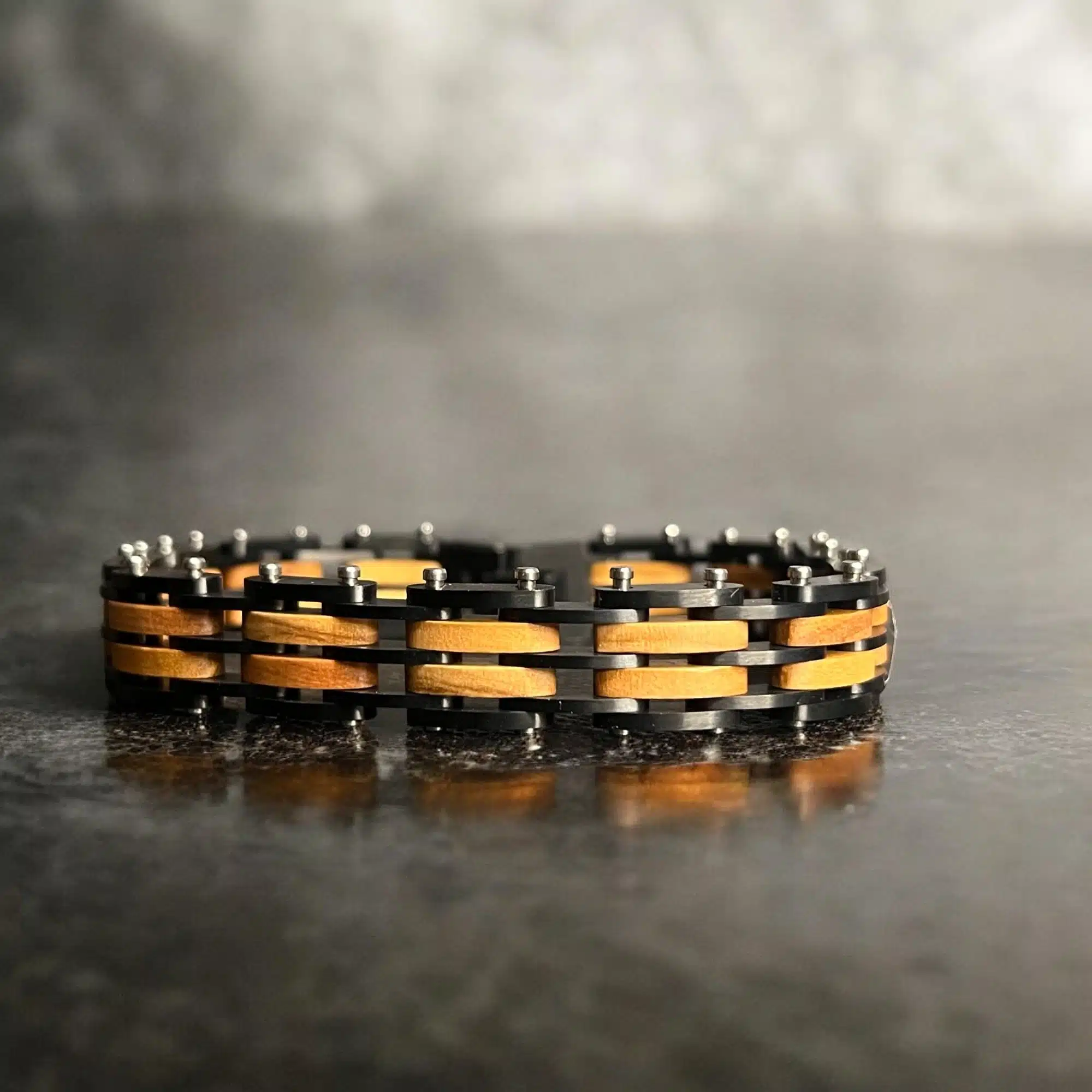 صُمم هذا السوار الخشبي للرجل المهتم بالموضة والذي يقدر جودة الصنع، ويضفي إحساسًا بالأناقة والتفرد. سواء كنت ترتدي ملابس أنيقة لحضور مناسبة خاصة أو تضيف لمسة من الأناقة إلى مظهرك اليومي، فمن المؤكد أن هذا السوار سيترك انطباعًا مميزًا. تتناغم الألوان الترابية للخشب مع اللمسات المعدنية لتشكل تباينًا مذهلاً يكمل أي مظهر.