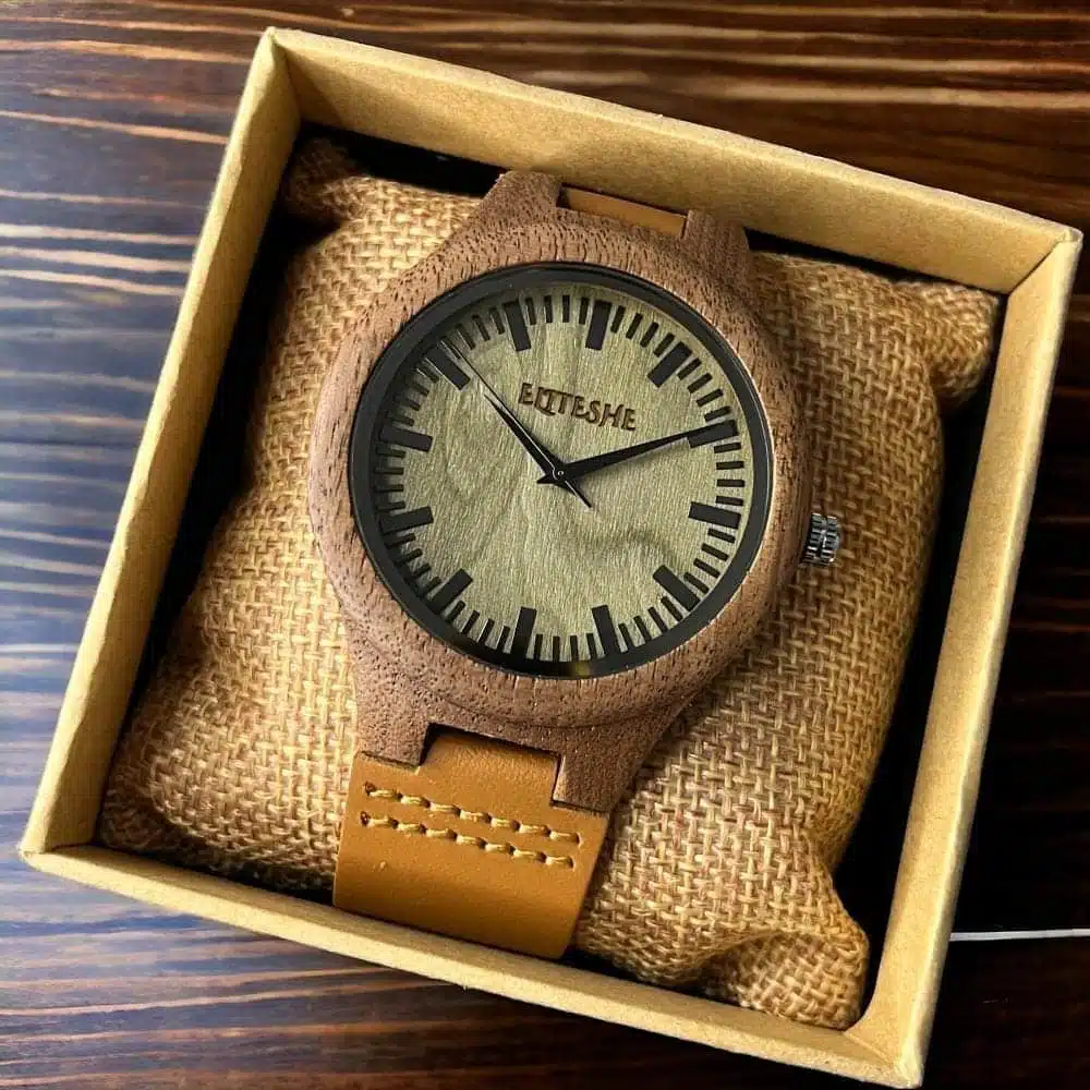 ساعة إيكو جرين الخشبية من إيليتشي والتي تتميز انها مقاومة للماء وتتمع بخفه عالية واناقة مميزة وفريدة مما يجعلها الأفضل دوماً للإستخدام اليومي ويعطيها المكانة العملية والتي تصل لتعدد استخداماتها سواء استخدام يومي أو في المناسبات .