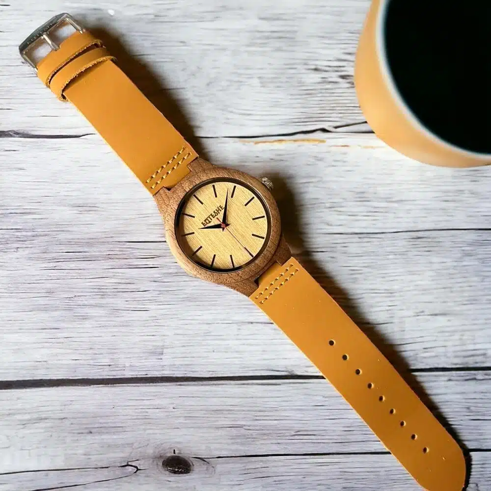 مادة الصنع | خشب بالكامل مع حزام جلد طبيعي