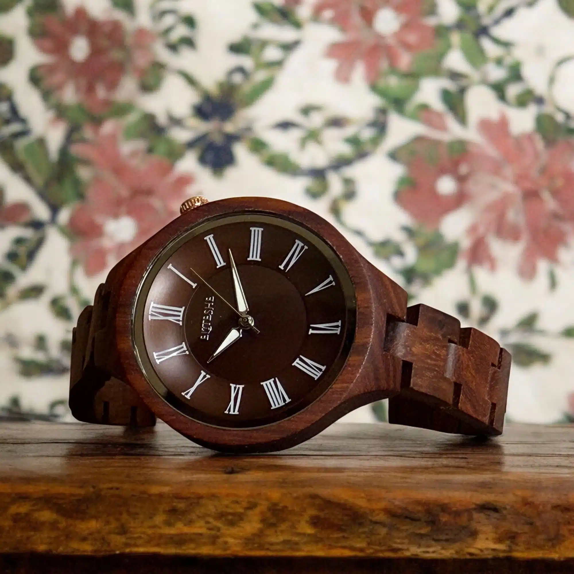صنعت ساعات “أوليفيا” بمهارة يدوية فائقة من الخشب الطبيعي. وتتمتع هذه الساعة الفاخرة بميناءٍ مصنوع من الفولاذ المقاوم للصدأ تتميز ألوانه ومظهره اللامع وتفاصيله الأنيقة بالألوان المتناسقة .