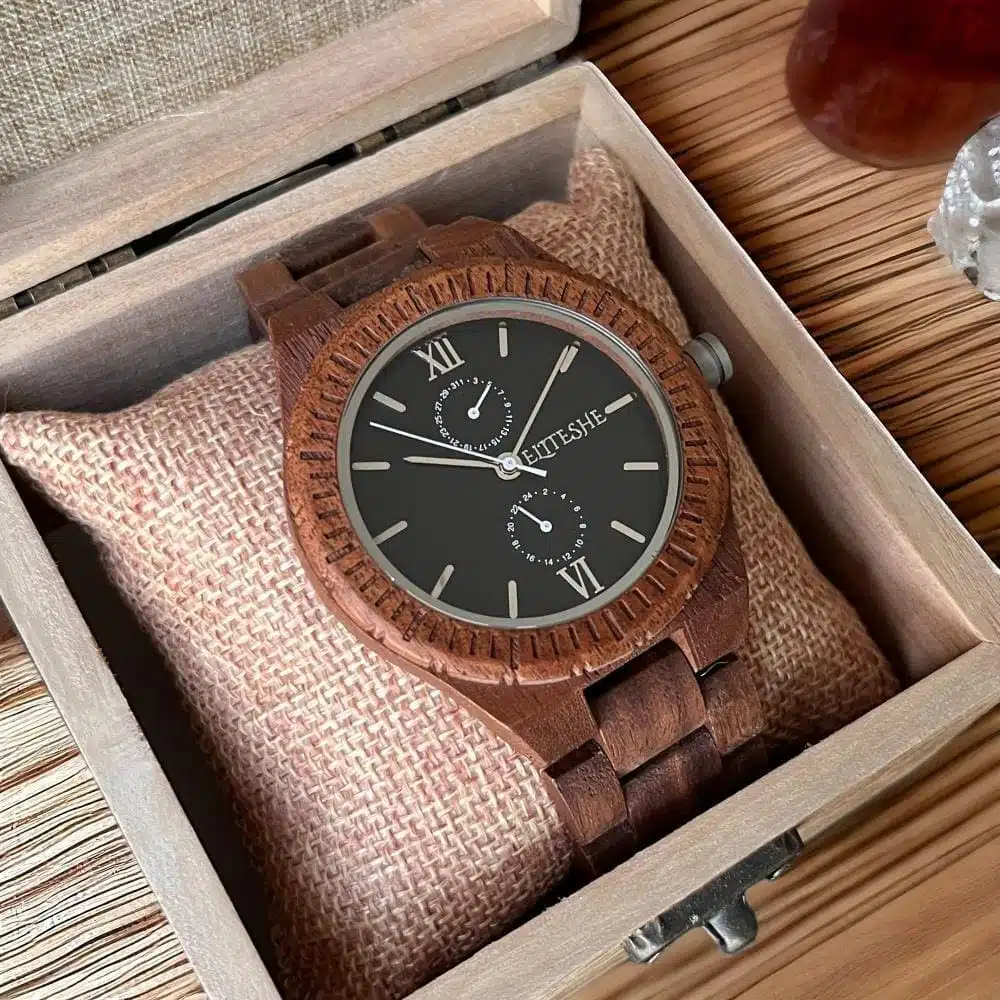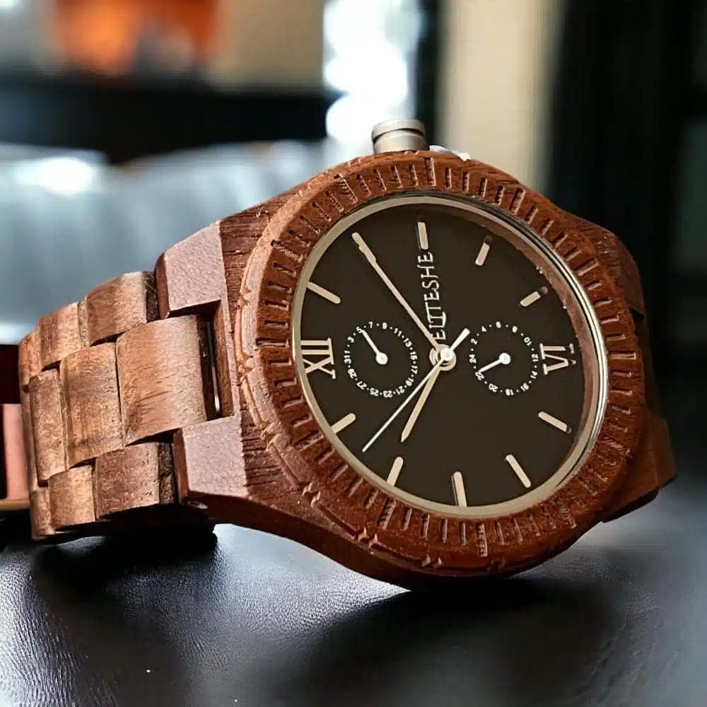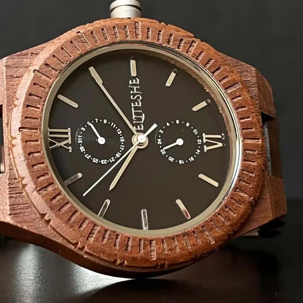 تعمل ساعة بلاك إيليجنت الخشبية بآلية حركة دقيقة وموثوقة، مما يضمن لك الوقت الصحيح في كل مرة. كما تتميز بمقاومتها للماء والخدش، مما يجعلها مثالية للاستخدام اليومي وتدوم لفترة طويلة.