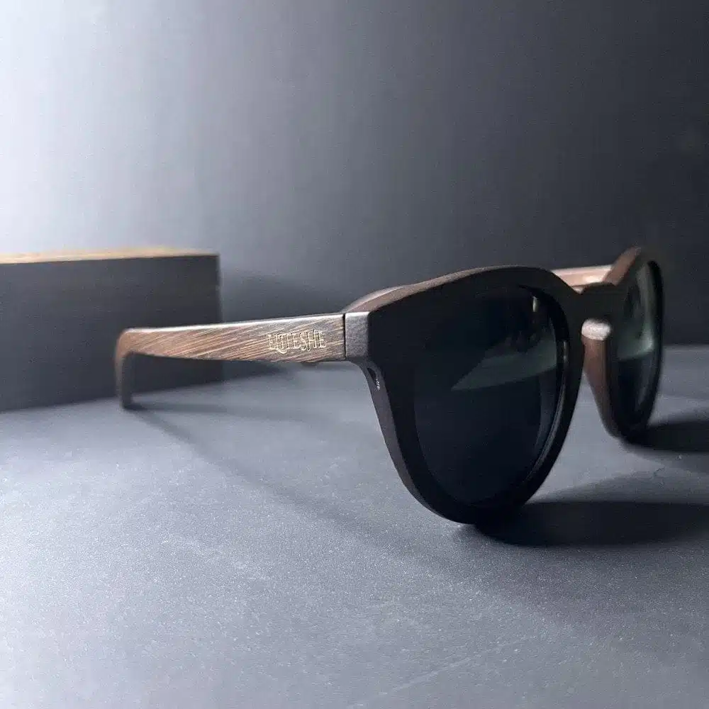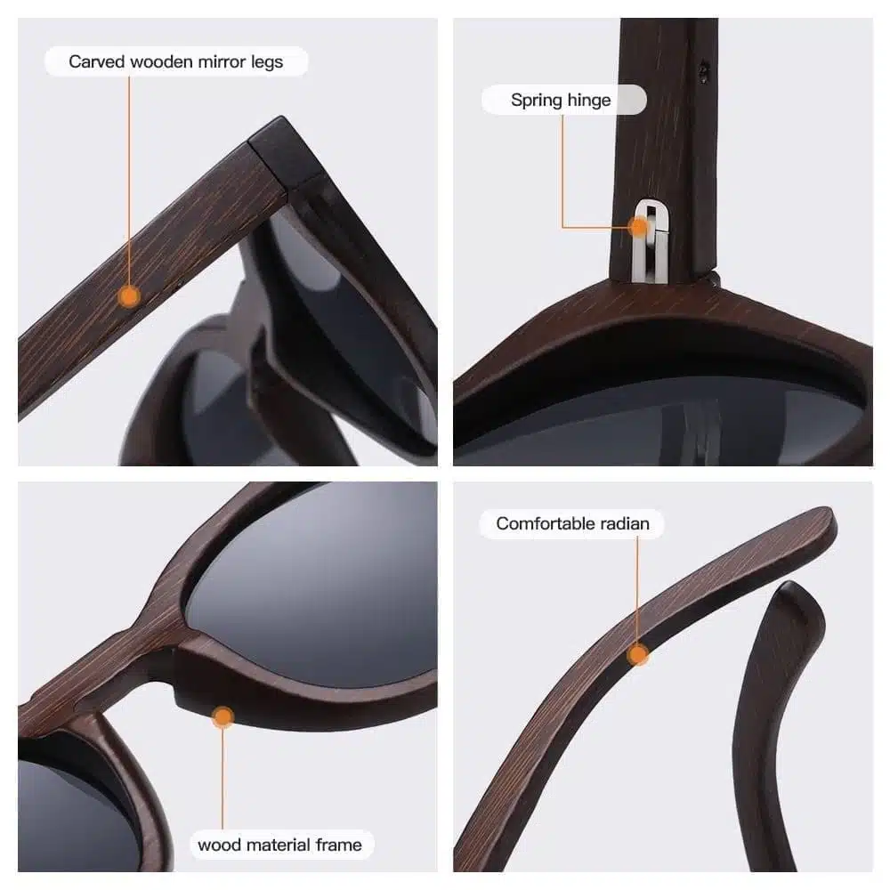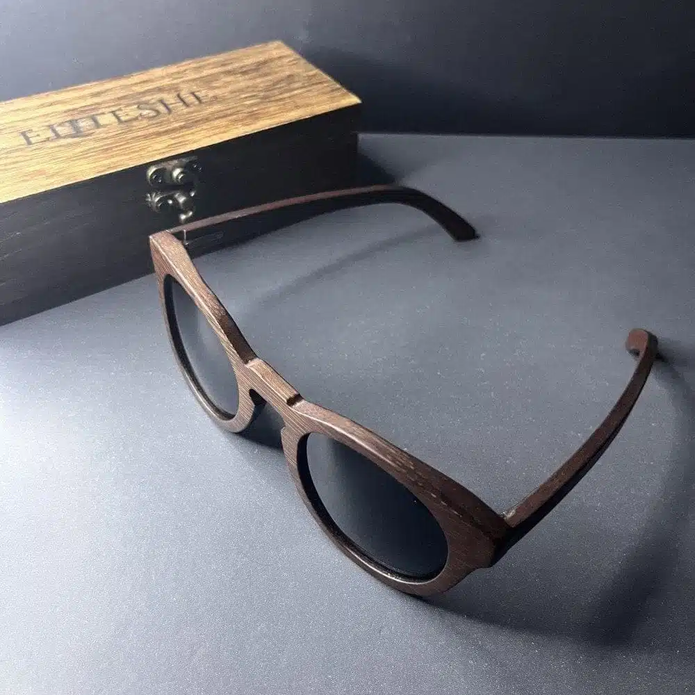 نظارات EliteShe الشمسية المصنوعة يدوياً من خشب الجوز والبامبو والأبانوس الطبيعي المقاوم للماء ، وتتميز بعدسات بلورايزد ذات مستوى الحماية UV400
