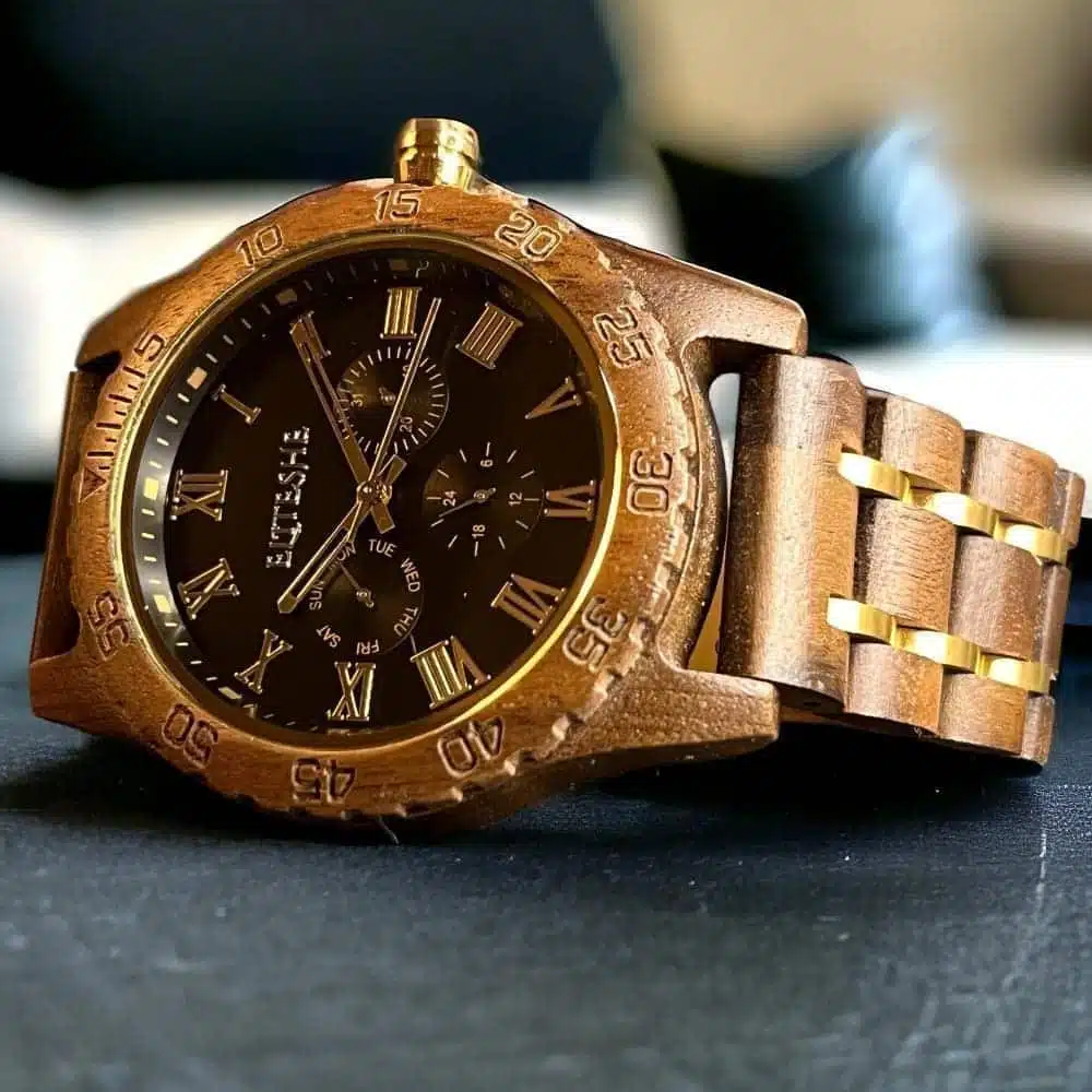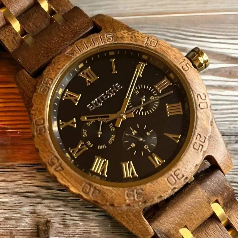 نقدم لكم الساعة الخشبية الرومانية الكلاسيكية باللون الأسود، وهي ساعة مذهلة تنضح بالأناقة والأناقة. صُنعت هذه الساعة بدقة واهتمام بالتفاصيل، وتجمع بين التصميم الحديث لميناء الأرقام الرومانية الكلاسيكية والجمال الطبيعي للخشب. يضيف اللون الأسود لمسة من الرقي، مما يجعله إكسسوارًا مثاليًا لأي مناسبة. الحزام الخشبي ليس مريحًا في الارتداء فحسب، ولكنه أيضًا صديق للبيئة، مما يضيف عنصر الاستدامة إلى بيان الموضة الخاص بك. بفضل حركة الكوارتز الموثوقة والزجاج المعدني المقاوم للخدش، تم تصميم هذه الساعة لتدوم طويلاً. تميز بين الآخرين وارفع من أسلوبك مع الساعة الخشبية الرومانية الكلاسيكية باللون الأسود.