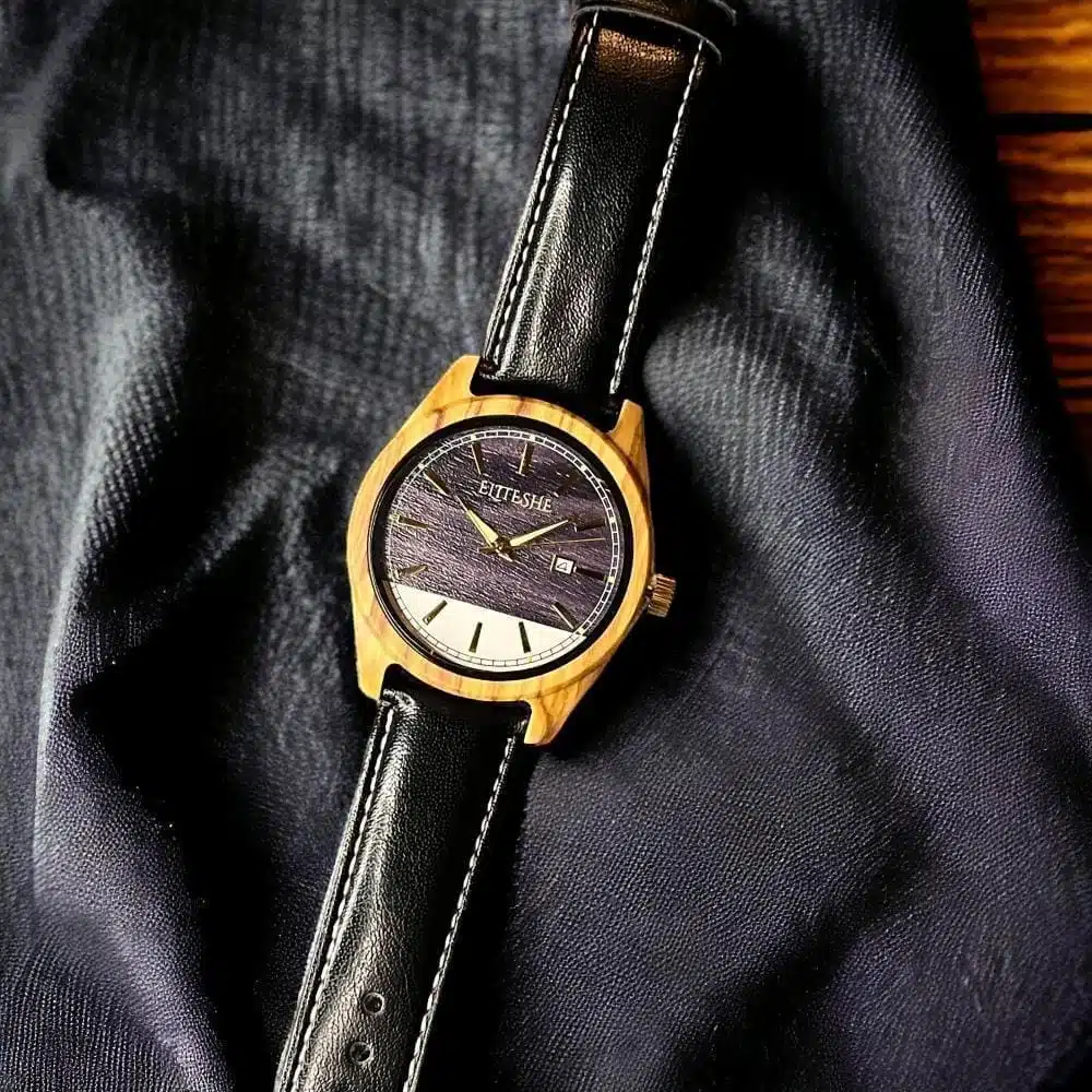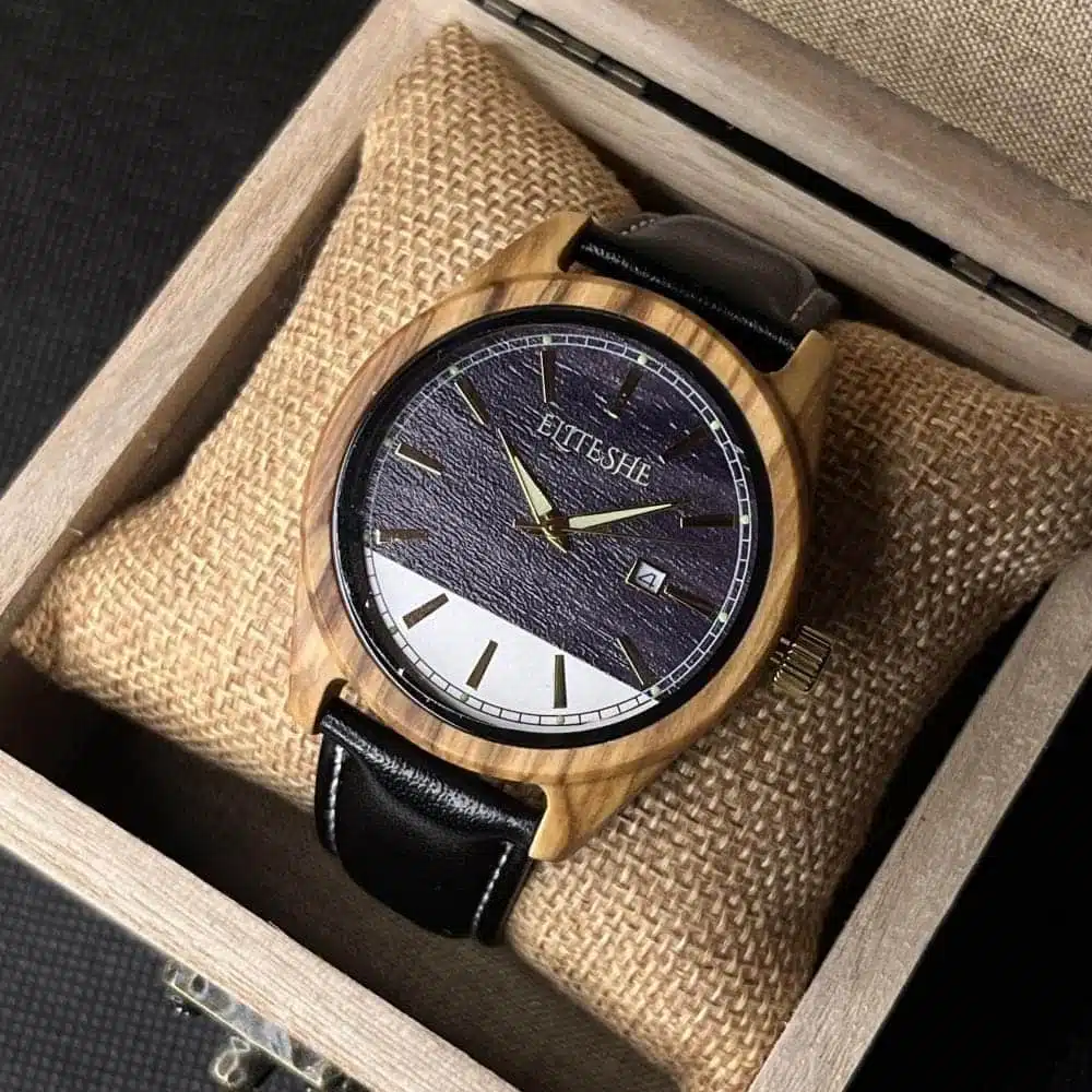 ساعة بلاك كلاسيك ليذر الخشبية من إيليتشي والتي تتميز انها مقاومة للماء وتتمع بخفه عالية واناقة مميزة وفريدة مما يجعلها الأفضل دوماً للإستخدام اليومي ويعطيها المكانة العملية والتي تصل لتعدد استخداماتها سواء استخدام يومي أو في المناسبات .