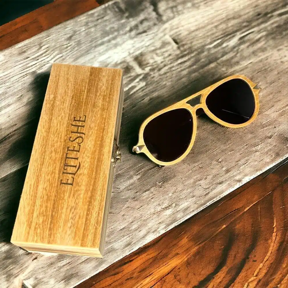 نظارات EliteShe الشمسية المصنوعة يدوياً من خشب الجوز والبامبو والأبانوس الطبيعي المقاوم للماء ، وتتميز بعدسات بلورايزد ذات مستوى الحماية UV400_x000D_