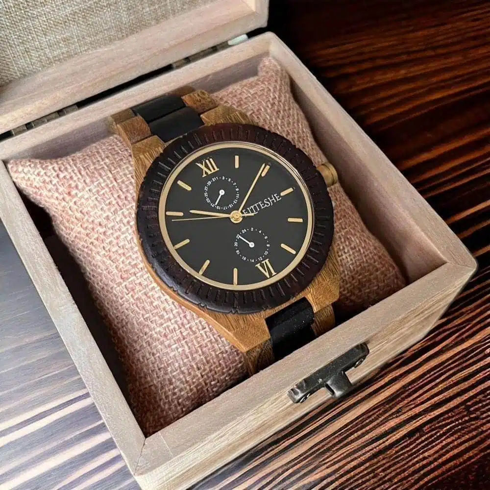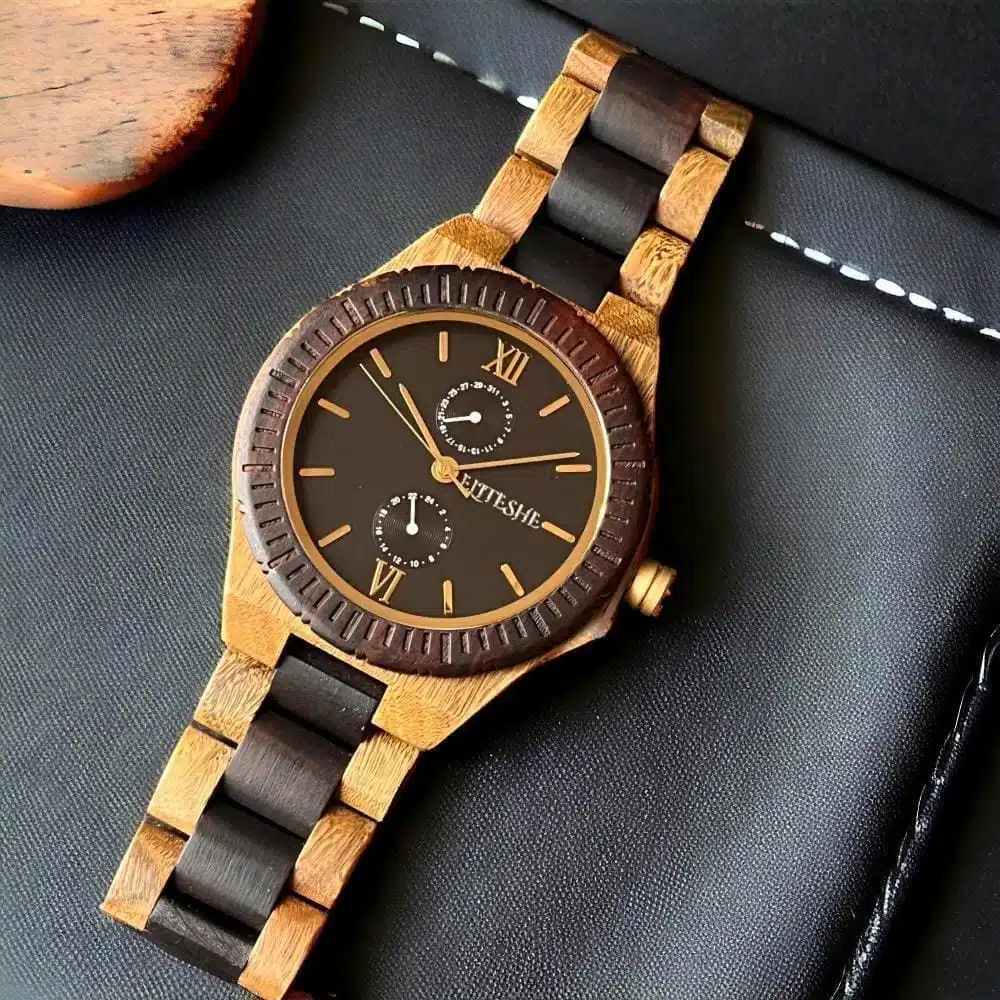 تعمل ساعة بلاك وود إيليجينت الخشبية بآلية حركة دقيقة وموثوقة، مما يضمن لك الوقت الصحيح في كل مرة. كما تتميز بمقاومتها للماء والخدش، مما يجعلها مثالية للاستخدام اليومي وتدوم لفترة طويلة.
