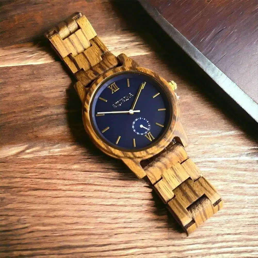 تعمل ساعة بلو كلاسيك وود الخشبية بآلية حركة دقيقة وموثوقة، مما يضمن لك الوقت الصحيح في كل مرة. كما تتميز بمقاومتها لرذاذ الماء والخدش، مما يجعلها مثالية للاستخدام اليومي وتدوم لفترة طويلة.