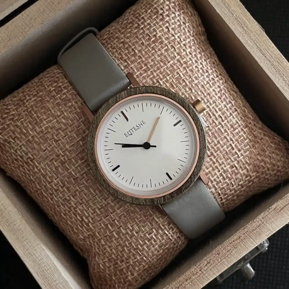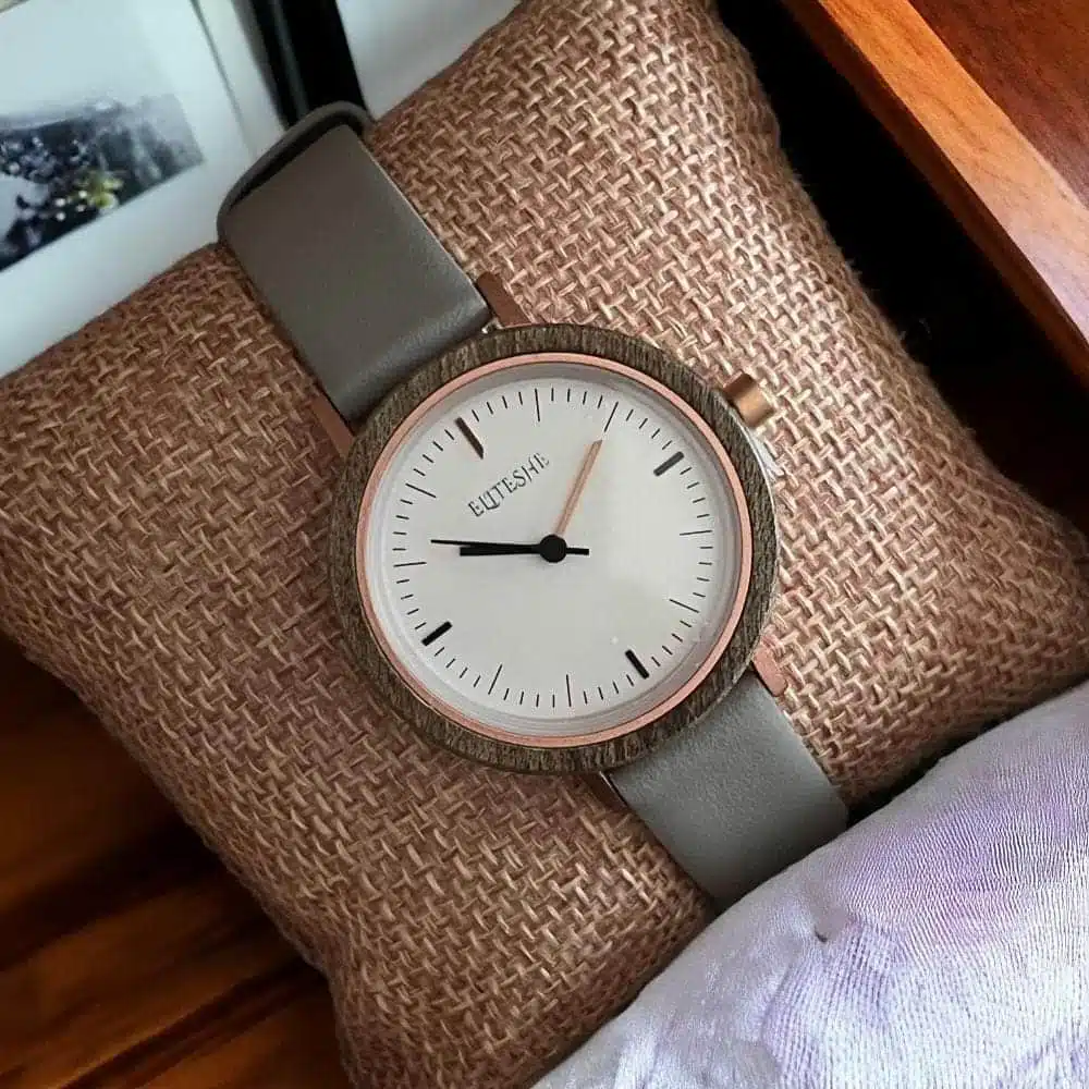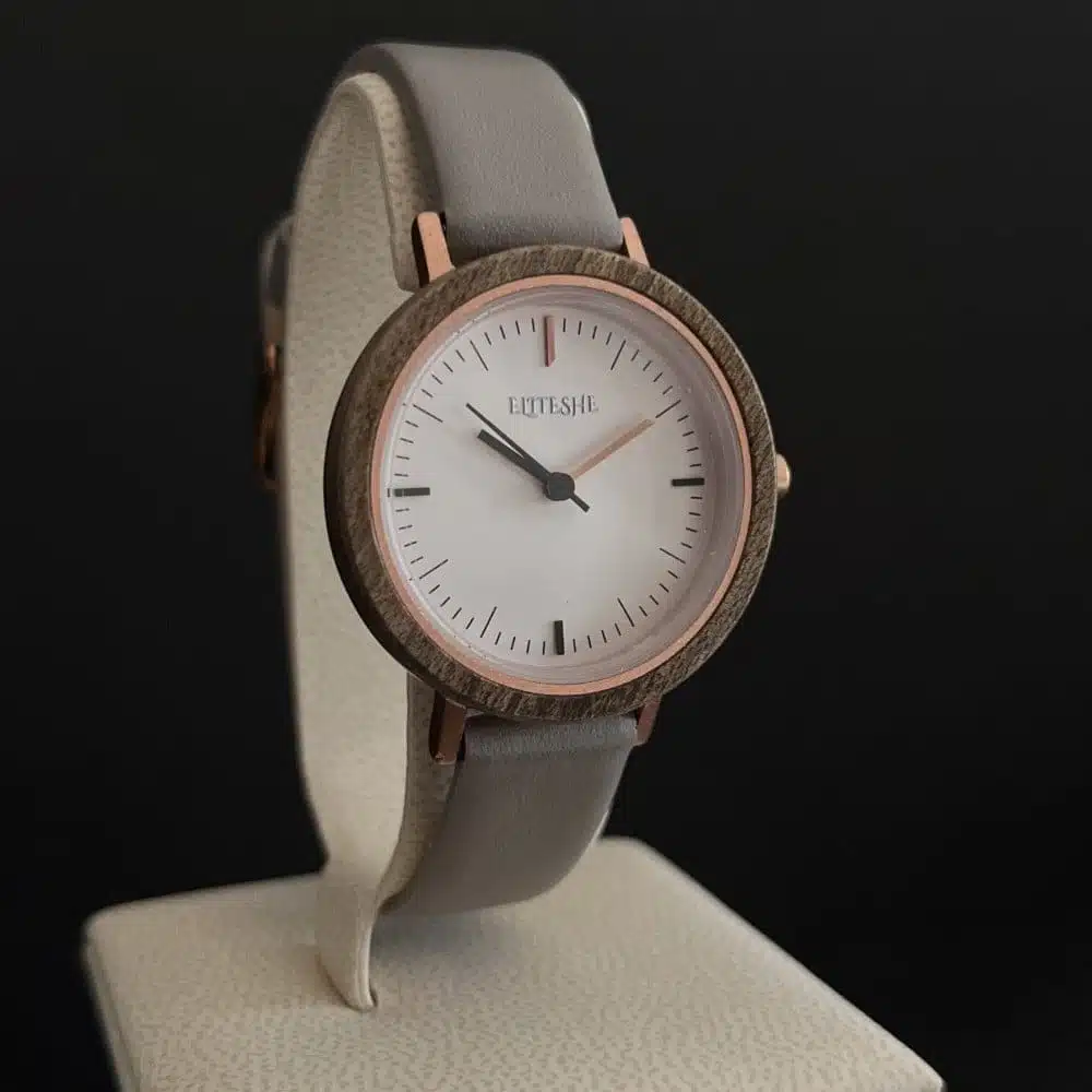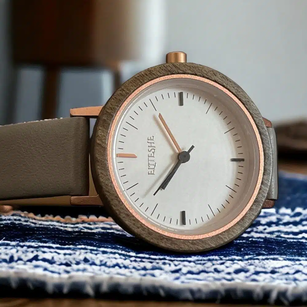قم بترقية أسلوبك مع ساعتنا الخشبية المصنوعة من الجلد الرمادي الكلاسيكي. تتميز هذه الساعة النسائية الأنيقة بحزام جلدي رمادي أنيق وقرص أبيض مذهل. مصنوع من خشب عالي الجودة، فهو يجمع بين جاذبية الجلد الخالدة وحداثة الخشب. تضيف التفاصيل الفضية لمسة من الفخامة، مما يجعل هذه الساعة مثالية لأي مناسبة. ارفع مظهرك وكن مثالًا للرقي مع ساعتنا الخشبية المصنوعة من الجلد الفضي الكلاسيكي.