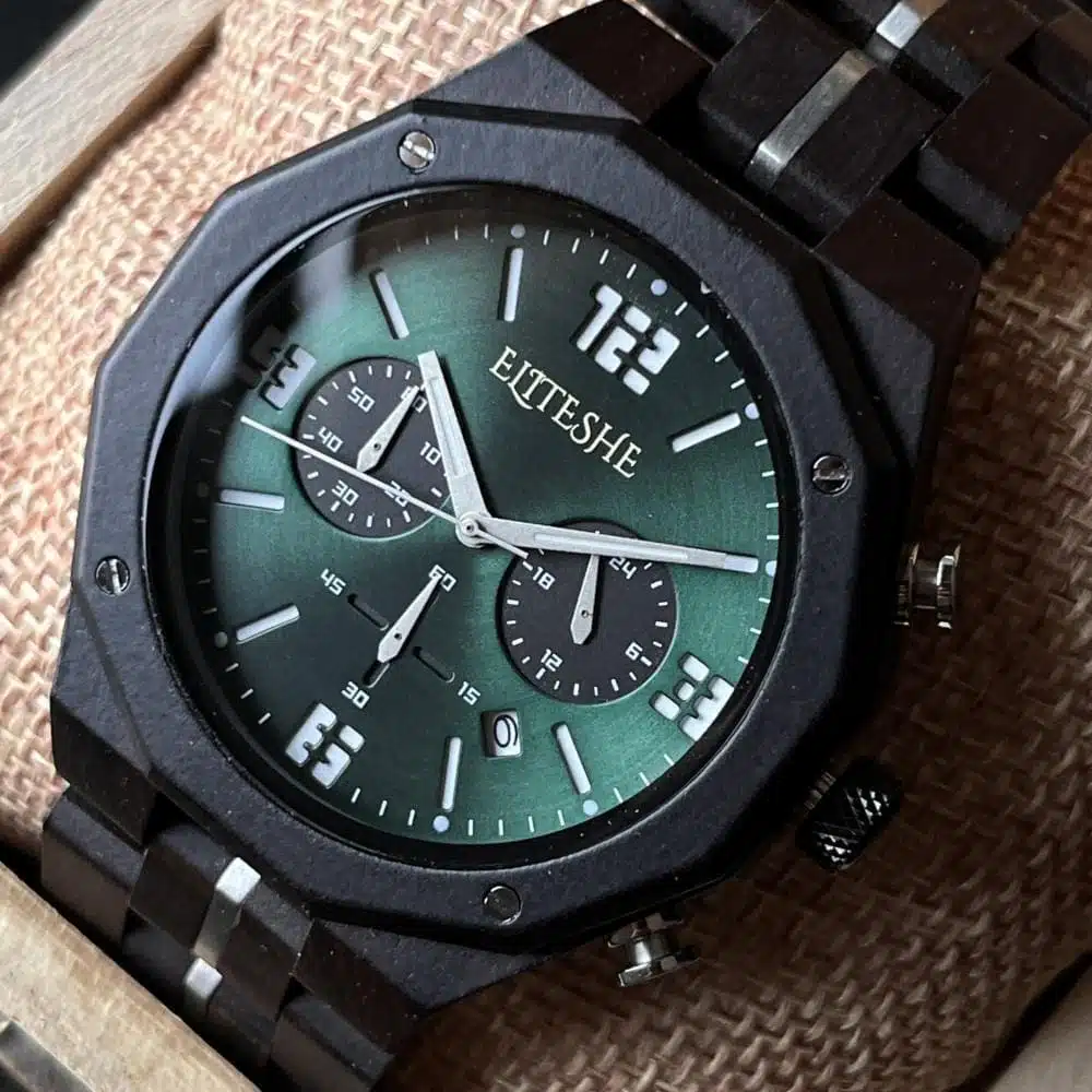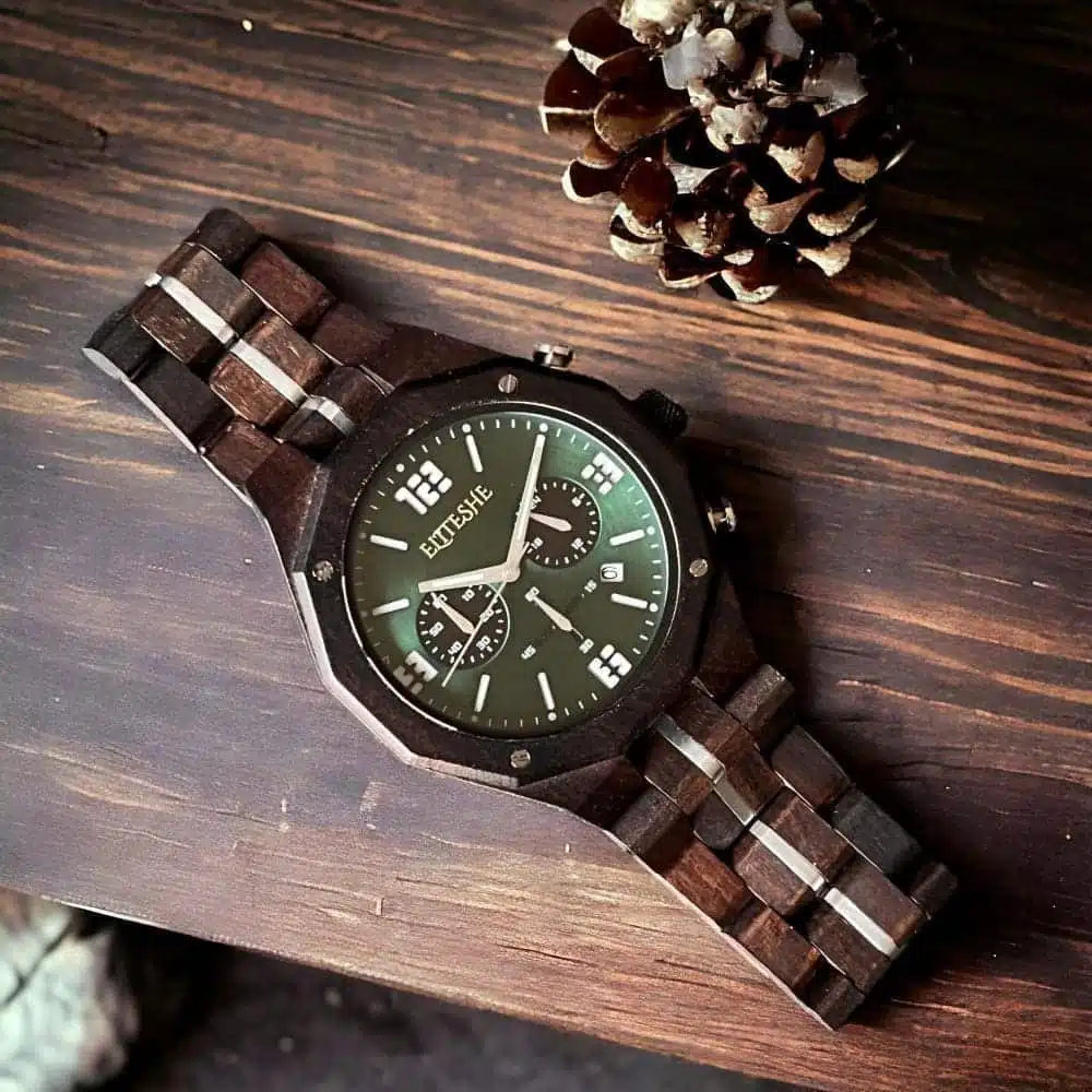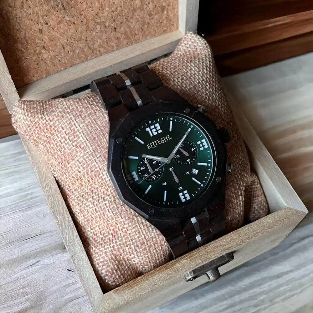 ساعة جرين لوكشيروس الخشبية تتميز هذه الساعة بمحرك كوارتز ياباني الصنع فاخر وانيق مع خاصية التاريخ وتأتي بتصميم مضلع عصري وتاتي بزجاج الزجاج ياقوتي المقاوم للخدش وحزام الساعة الخشبي بالكامل . هذه الساعة مصنوعة يدويًا بدقة متناهية من خشب الزيبرا والأبانوس الطبيعي الإستوائي .