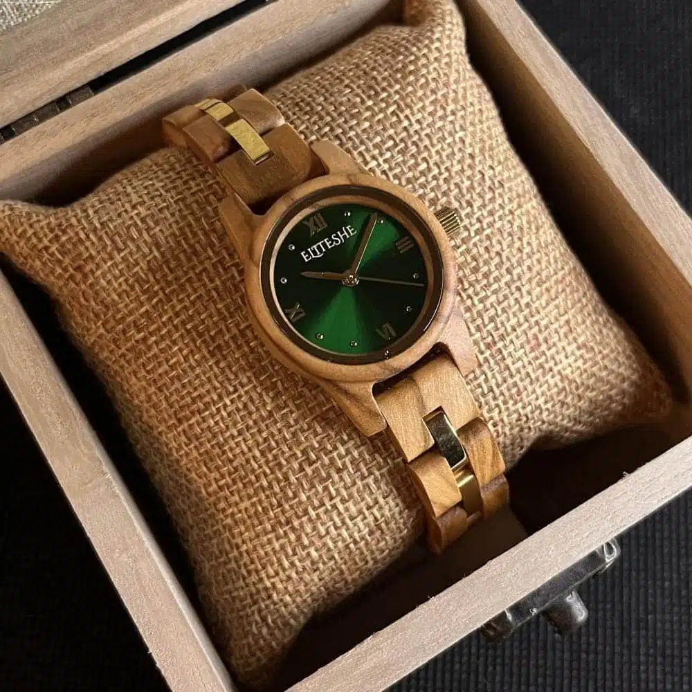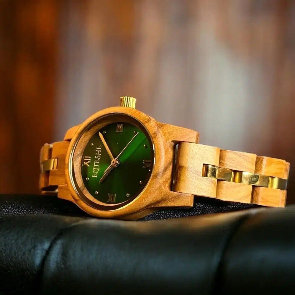 ساعة نسائية خشبية جرين مون – تصميم أنيق وفريد