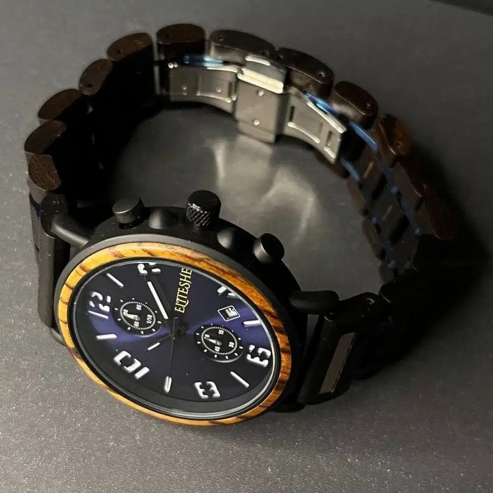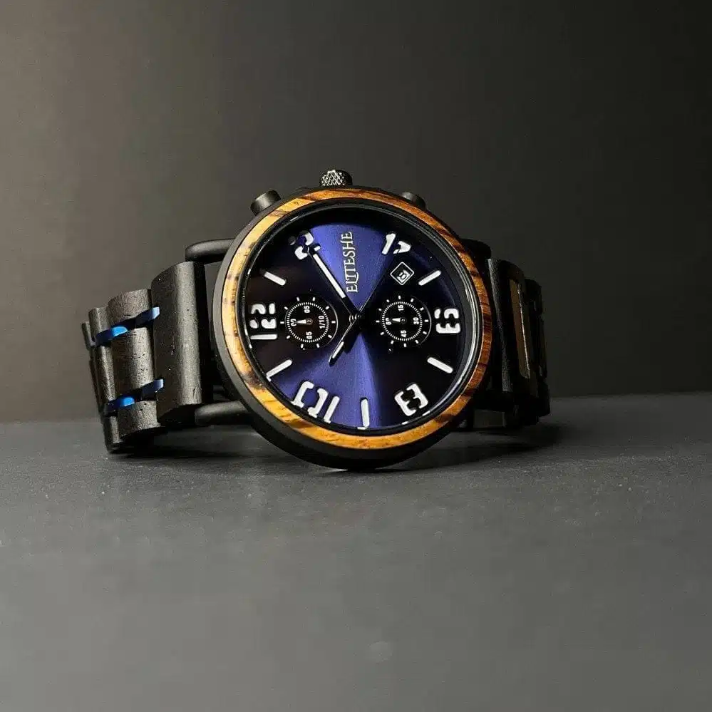 تتميز إصدارت “جنتل” الرجالية الخشبية بتصميم يجمع بين الساعة العصرية والساعة الكلاسيكية وبمحرك كرونوغراف فاخر ، وهي مصممة خصيصاً لتكتمل بها أناقتك ، تأتي ساعات “جنتل” بقرص دائري ذو مقاس 44mm وبحزام خشبي مدعم بفواصل فولاذية مما منحها القوة والمتانة لتكون مناسبة لك في جميع الأوقات