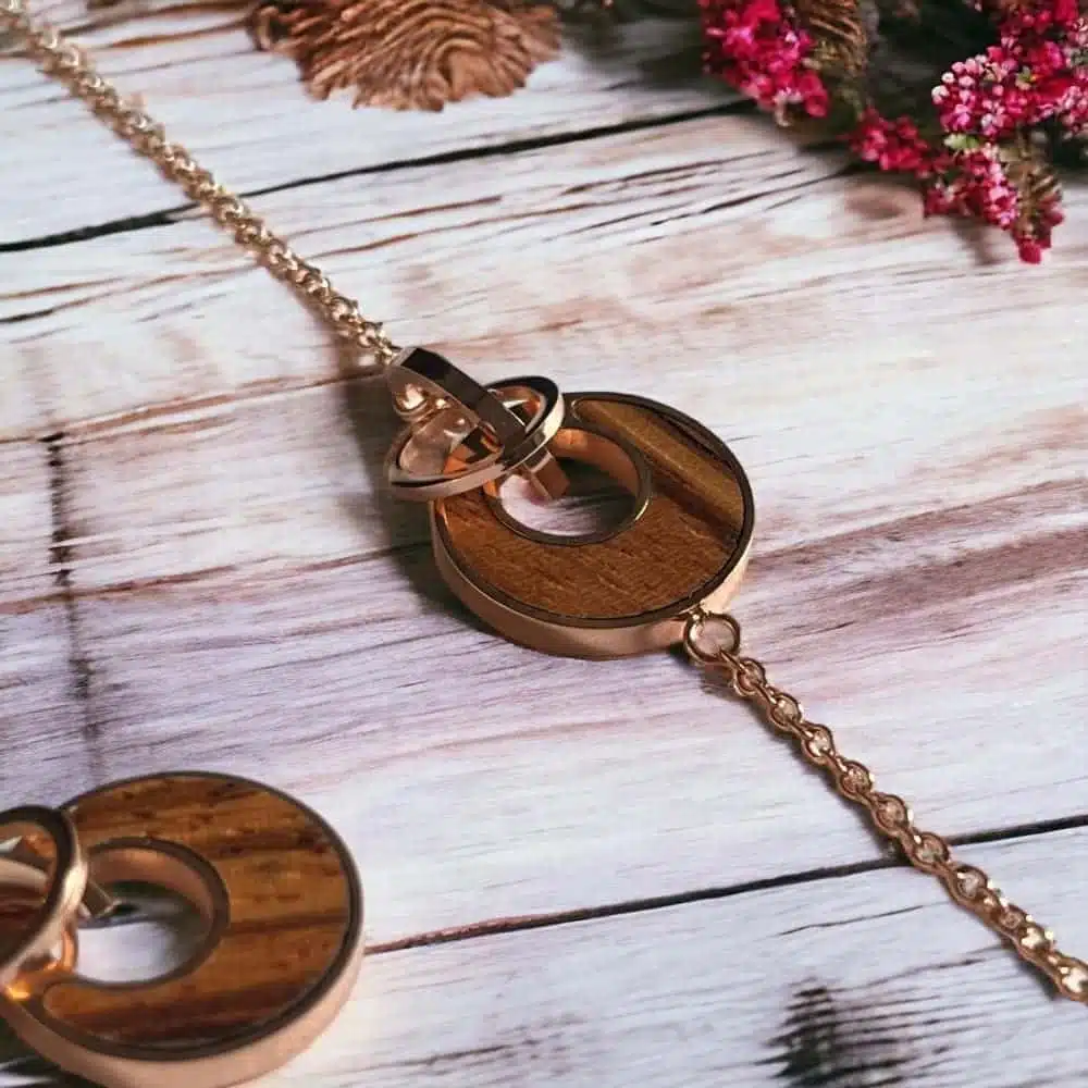 مصنوعة من خشب الجوز الطبيعي مع الاستيل المقاوم للماء والصدأ والمطلي بالذهب المائل للون الروز ليضفي على روز قولد سمر بريق ولمعان وأناقة .