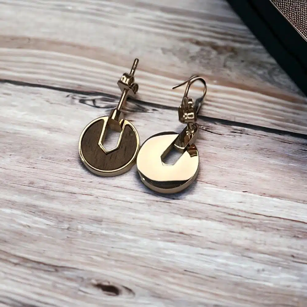 مادة الصنع : خشب الجوز مع الإستيل المطلي بالذهب