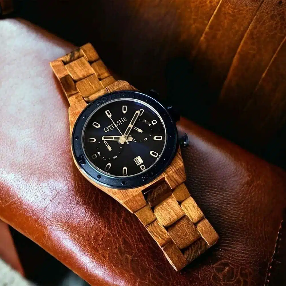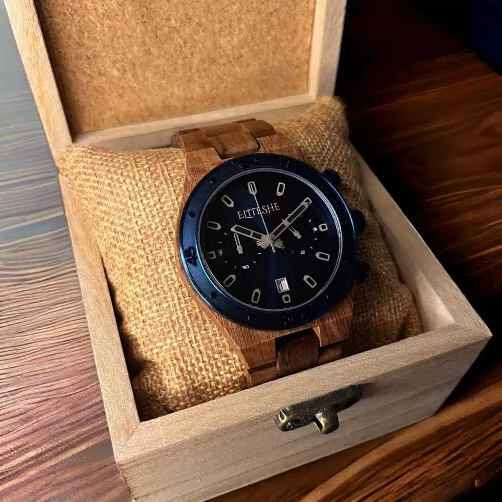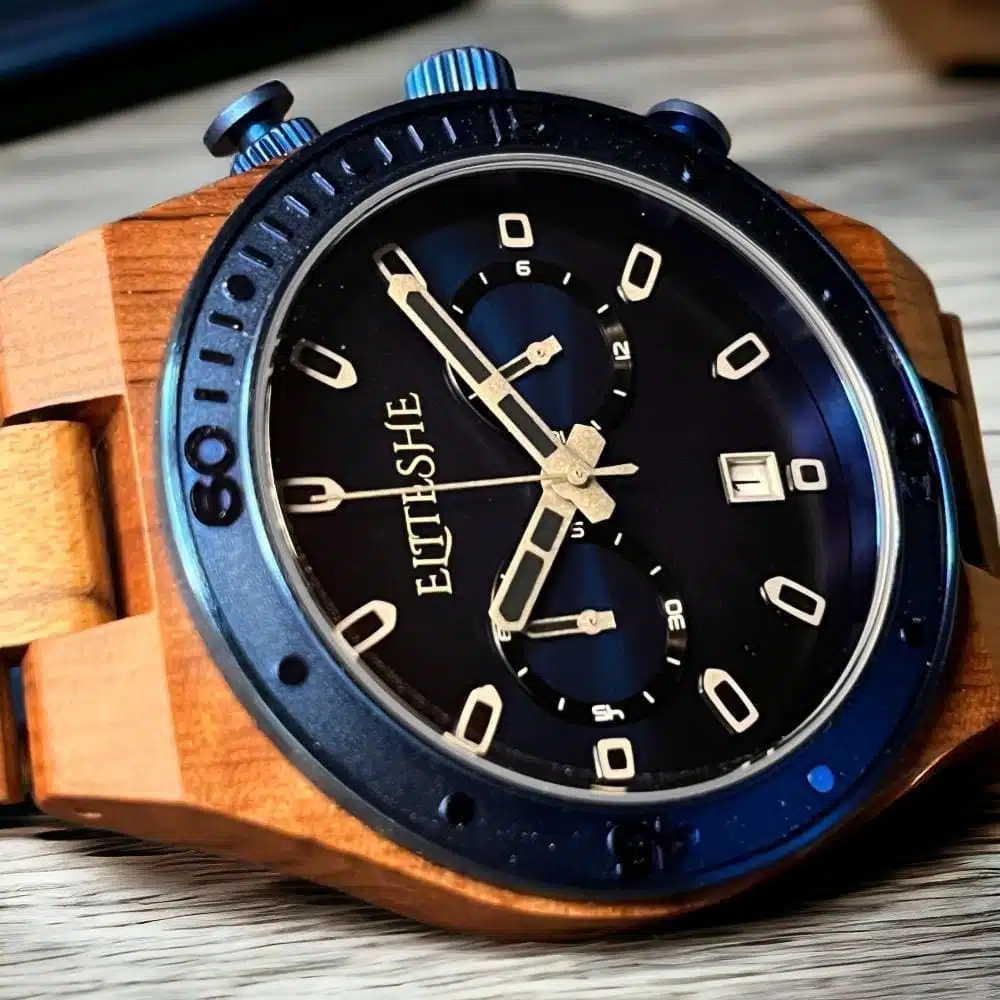 🌊 ساعة بلو روك مان الخشبية – أناقة بحرية بتقنية كرونوغراف!