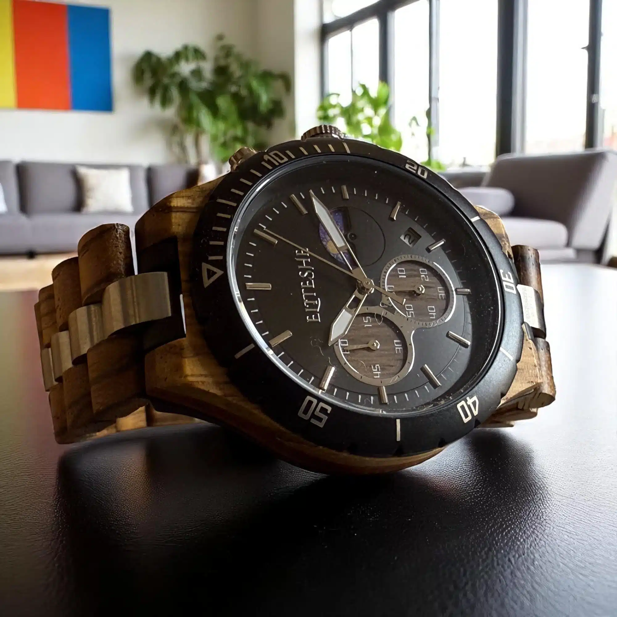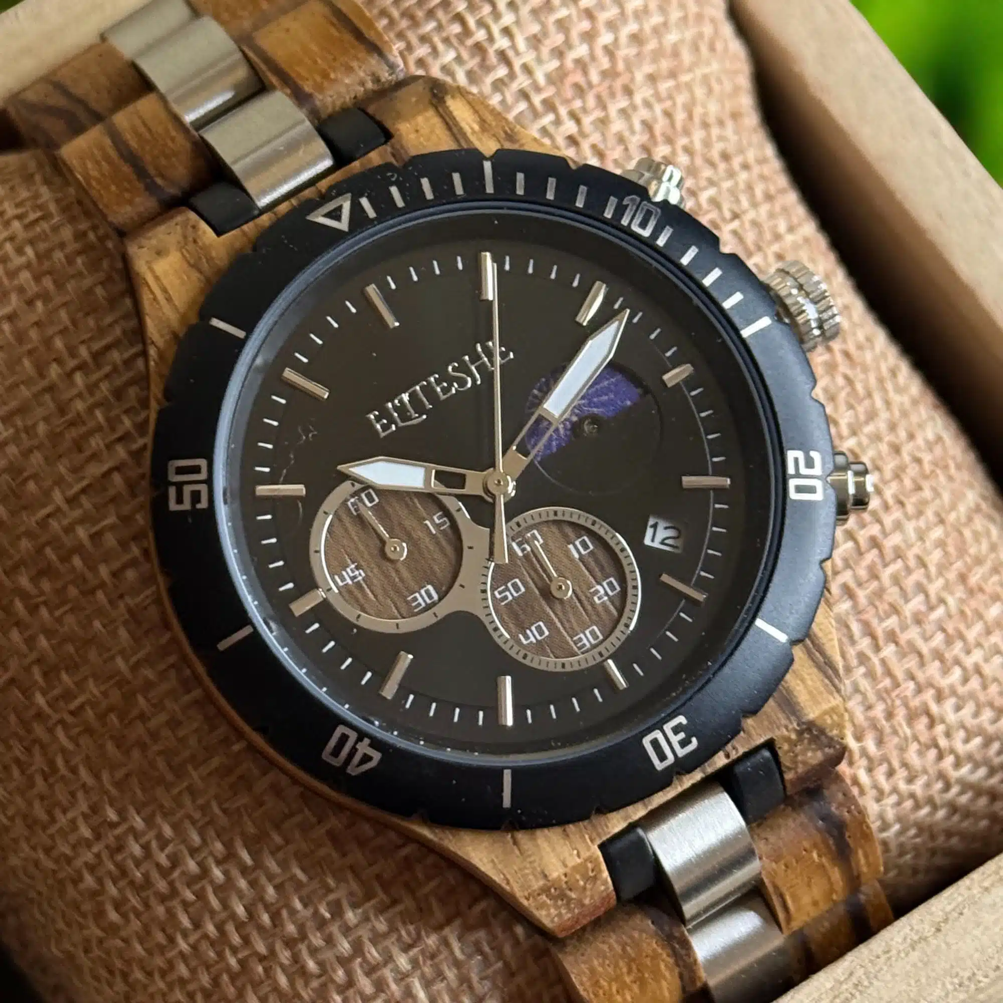 ⌚ ساعة دارك ليجيند مون – تحفة خشبية بتقنية كرونوغراف متطورة!