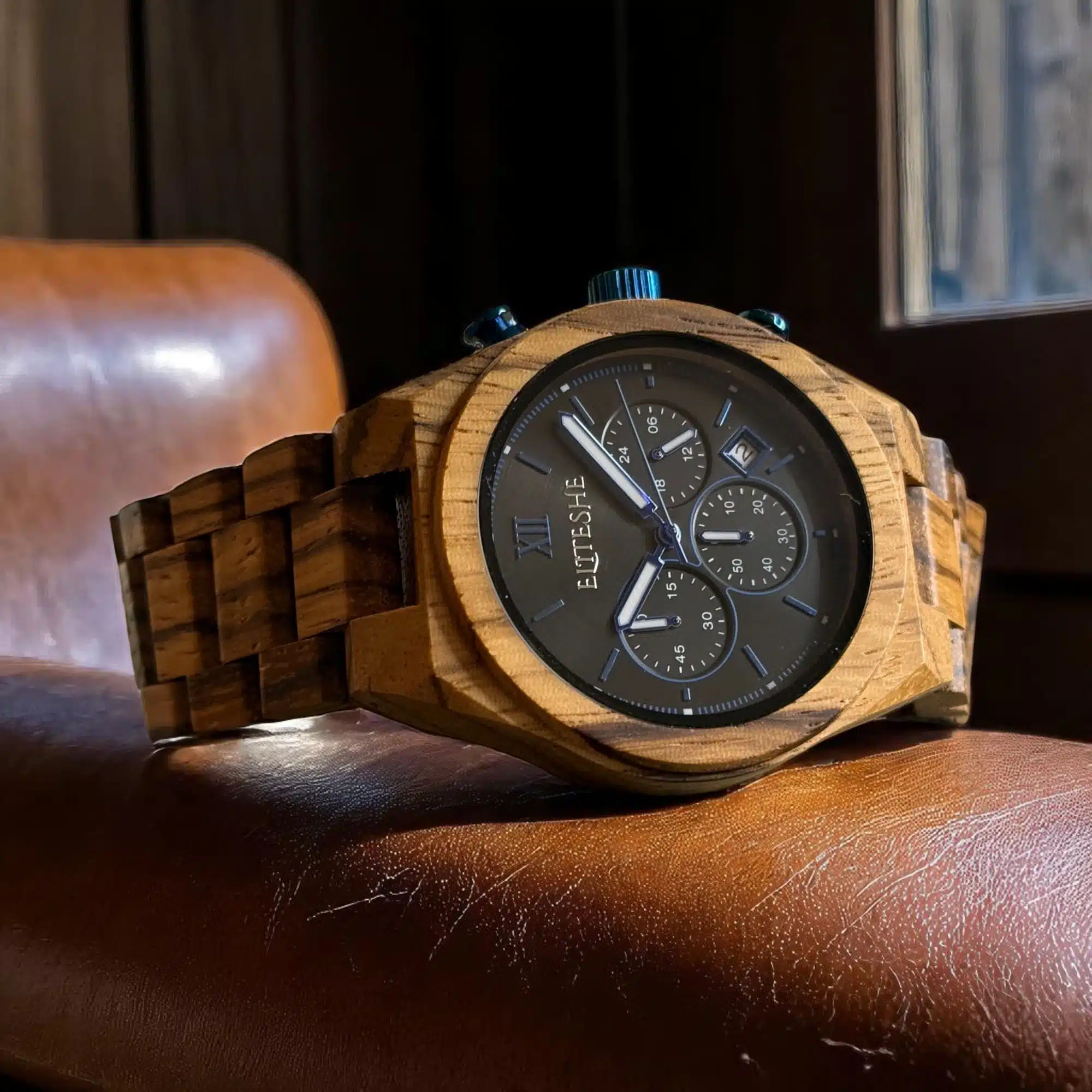 ساعة زيبرا كلاسيك بانيوود الخشبية – أناقة برية بتصميم عصري