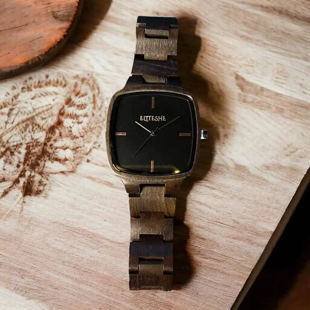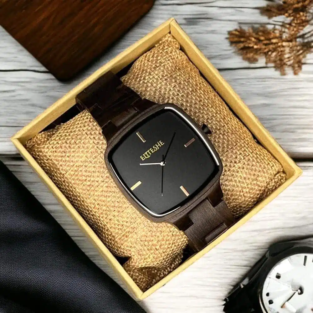 🟫 ساعة كلاسيك سكوير الخشبية – أناقة خشبية بتصميم مربع كلاسيكي!
