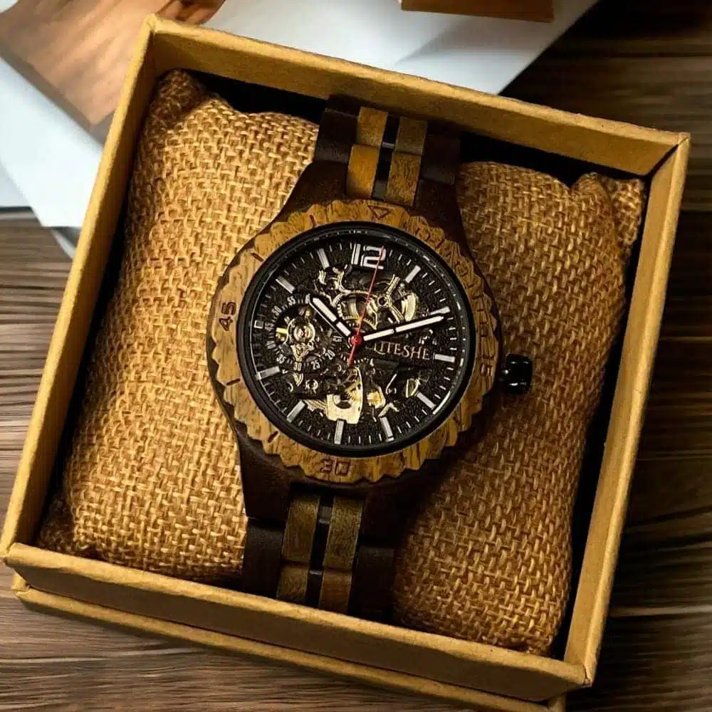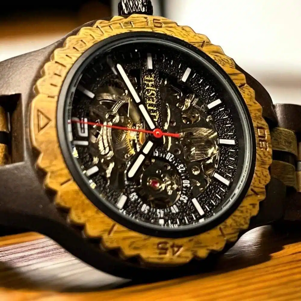 باختصار، تُعتبر ساعة الخشب الأوتوماتيكية بمقاس 45 ملم خيارًا رائعًا لأولئك الذين يقدرون الفن والأناقة الطبيعية، فهي تجمع بين الجمال الخالص والأداء المتفوق بشكل متناغم ومتقن.