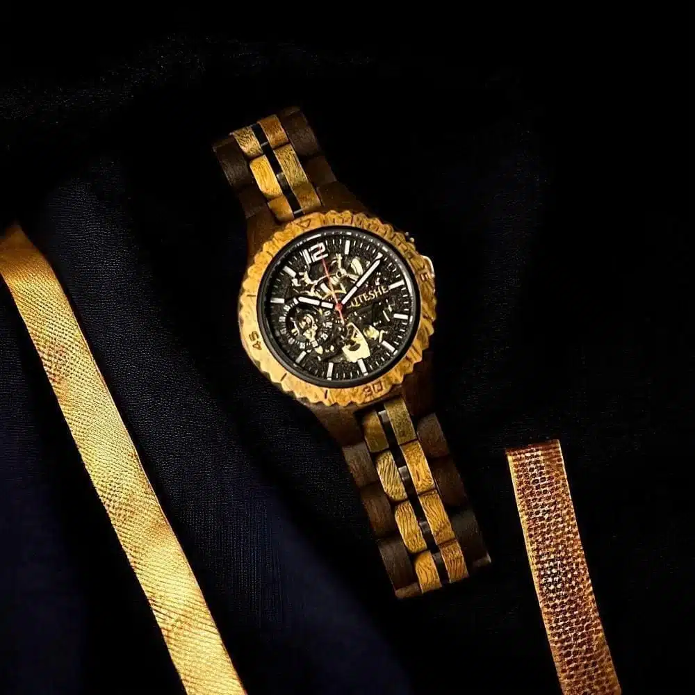 - توفر لمسة فريدة لشخصيتك، حيث تبرز روعة الخشب الطبيعي في كل تفاصيل الساعة.