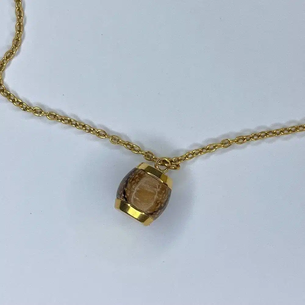 مصنوعة من خشب الجوز الطبيعي مع الاستيل المقاوم للماء والصدأ والمطلي بالذهب ليضفي على سلسال زيبرا ستار بريق ولمعان وأناقة .