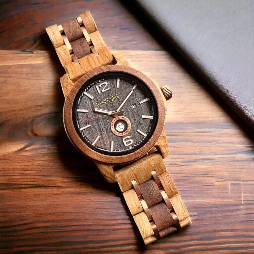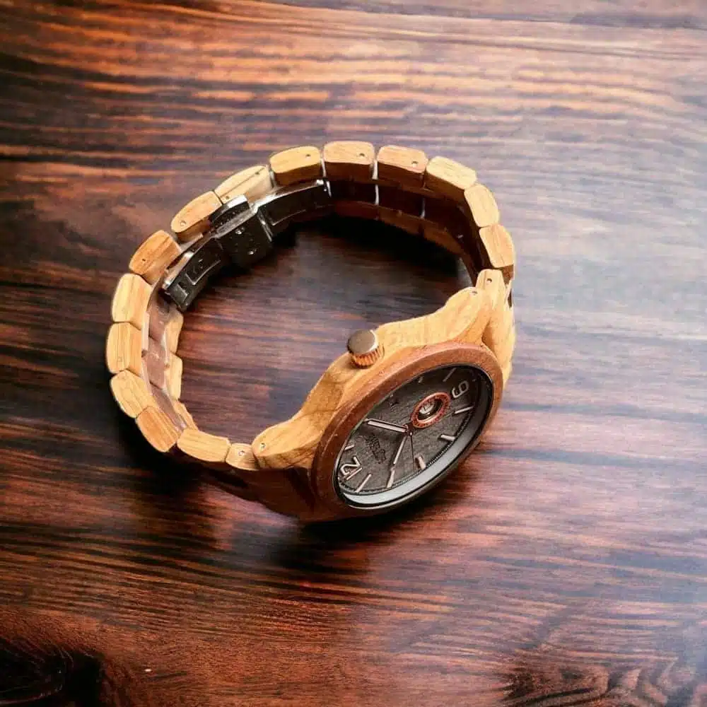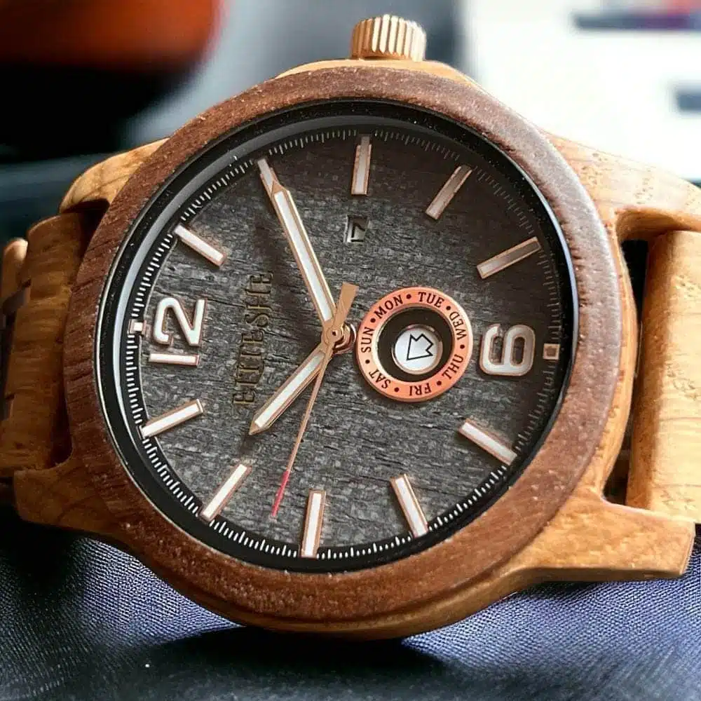 ساعة سلفر أررو الخشبية تتميز هذه الساعة بمحرك كوارتز ياباني الصنع فاخر وانيق مع خاصية التاريخ بتصميم السهم العصري وأيام الأسبوع والزجاج الياقوتي المقاوم للخدش وحزام الساعة الخشبي بالكامل . هذه الساعة مصنوعة يدويًا بدقة متناهية من خشب الزيبرا والأبانوس الطبيعي الإستوائي .