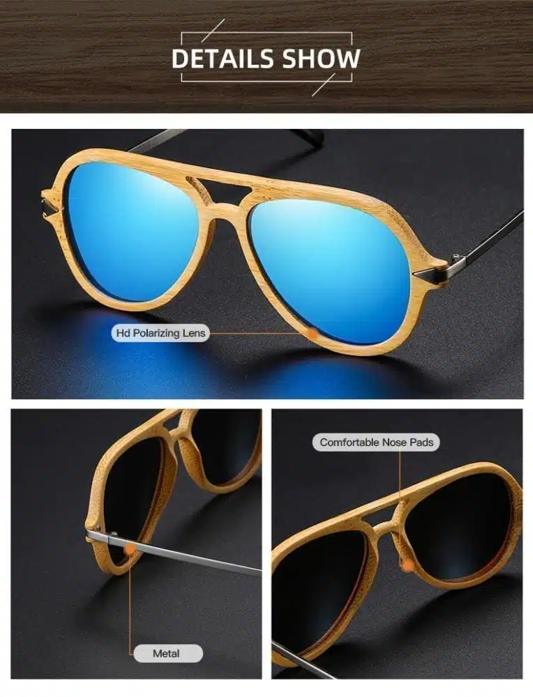 نظارات EliteShe الشمسية المصنوعة يدوياً من خشب الجوز والبامبو والأبانوس الطبيعي المقاوم للماء ، وتتميز بعدسات بلورايزد ذات مستوى الحماية UV400