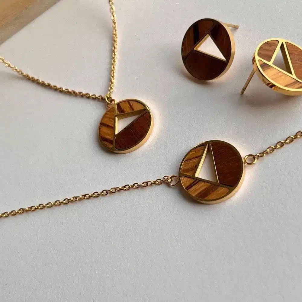 مادة الصنع : خشب الجوز مع الإستيل المطلي بالذهب