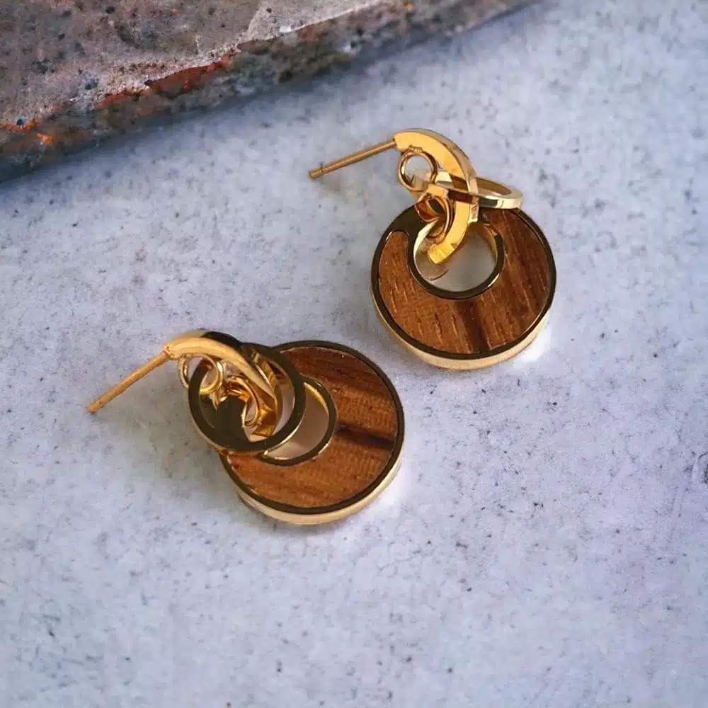مادة الصنع : خشب الجوز مع الإستيل المطلي بالذهب