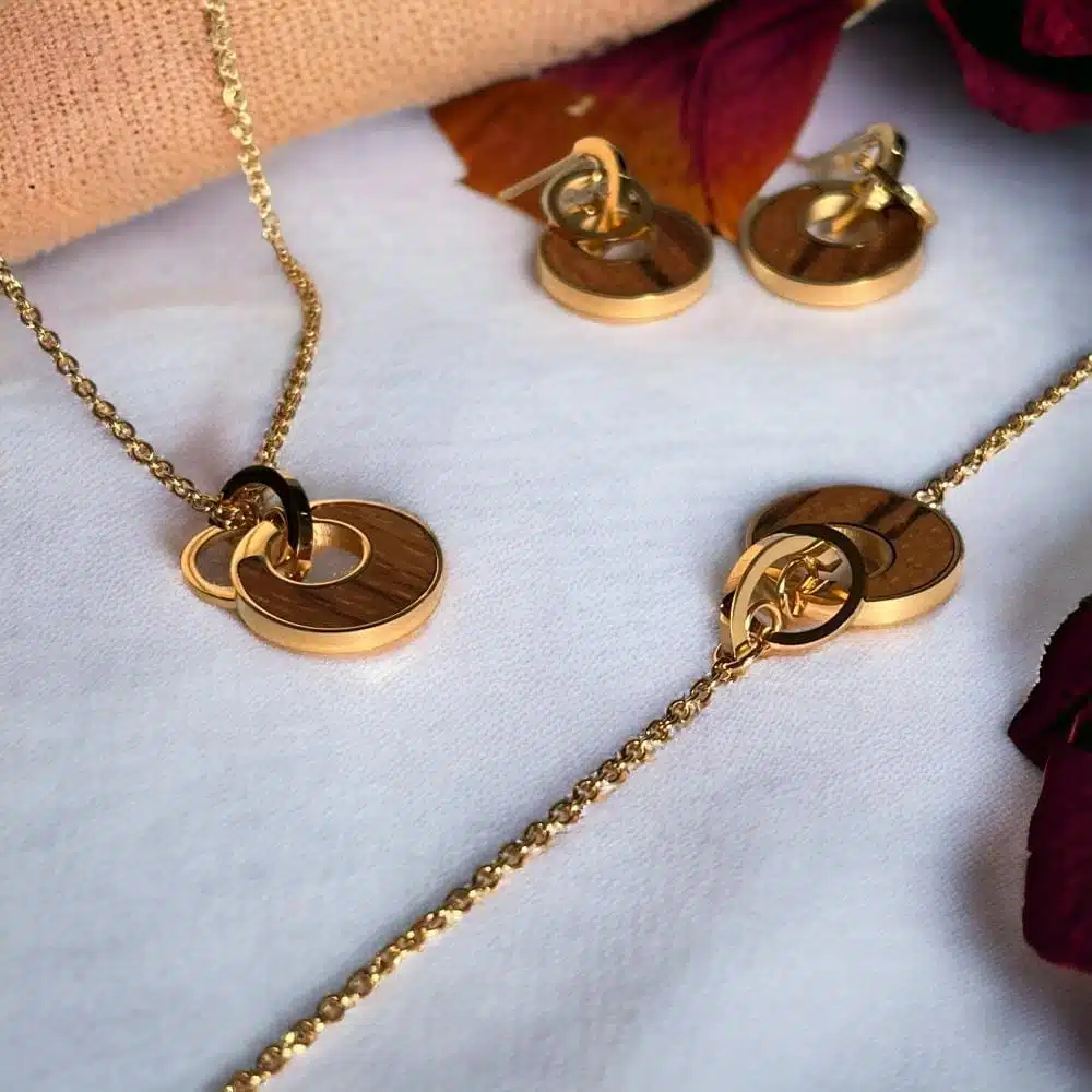 مصنوعة من خشب الجوز الطبيعي مع الاستيل المقاوم للماء والصدأ والمطلي بالذهب ليضفي على قولد سمر بريق ولمعان وأناقة .