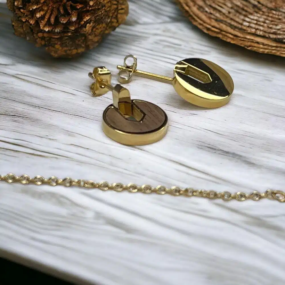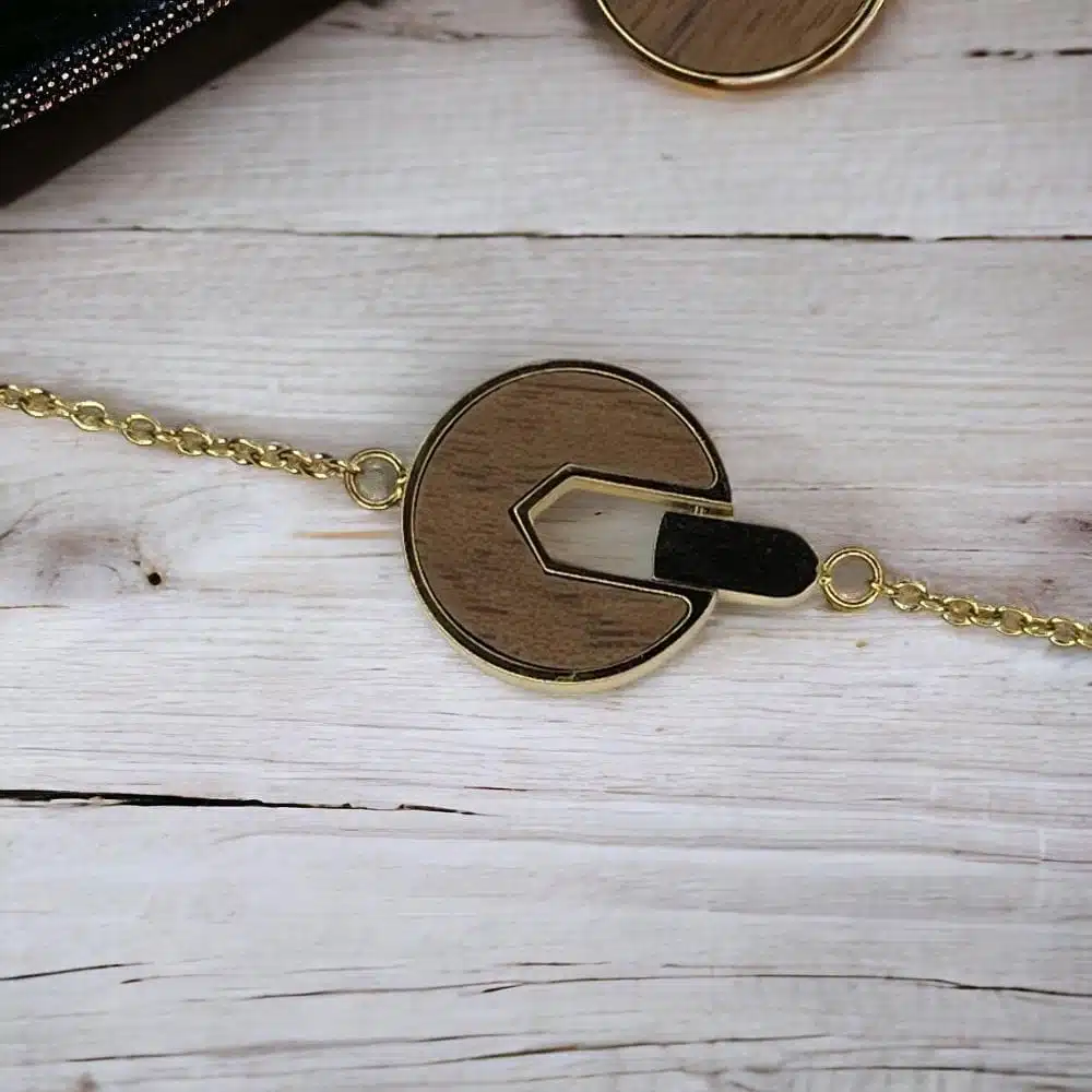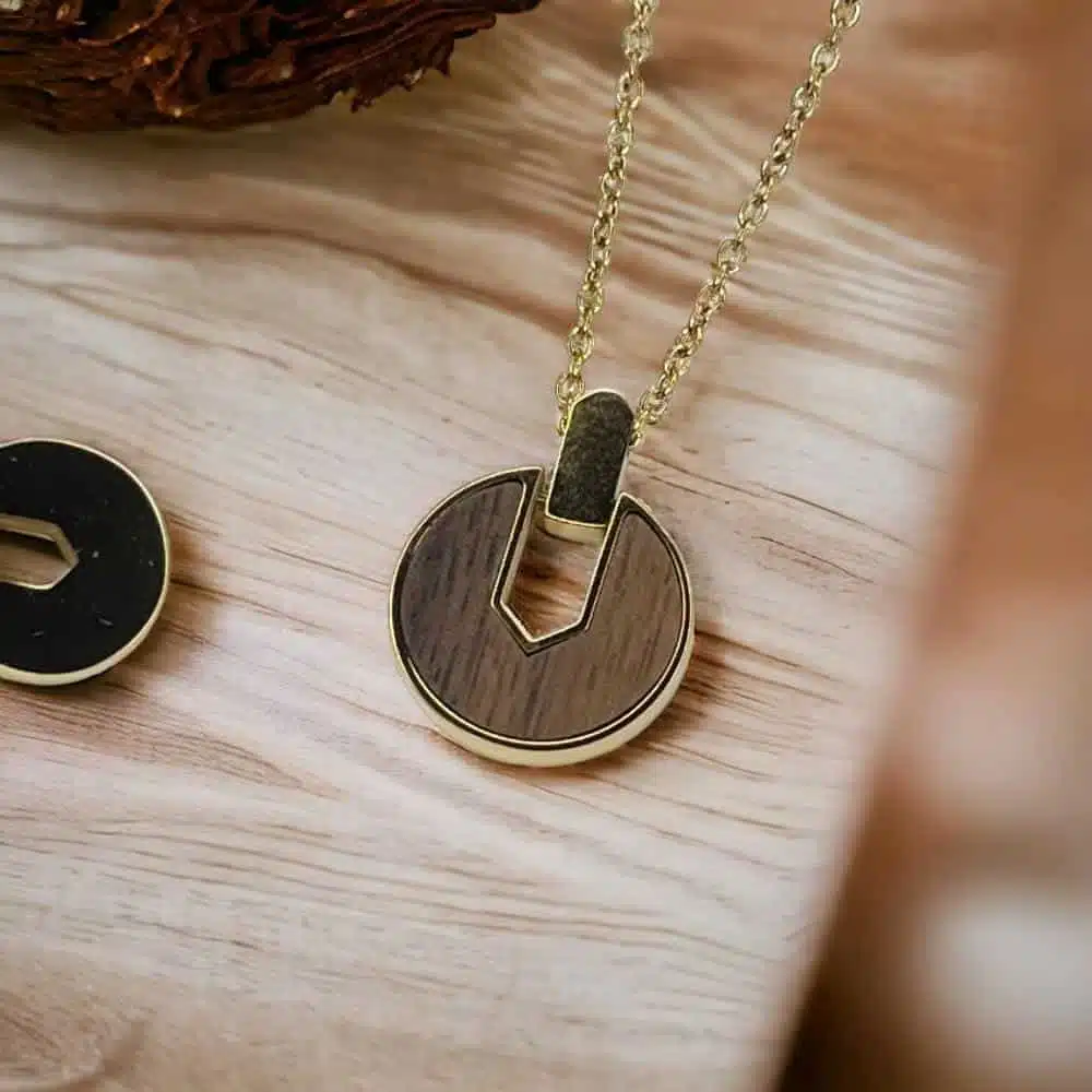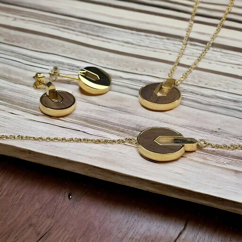 مصنوعة من خشب الجوز الطبيعي مع الاستيل المقاوم للماء والصدأ والمطلي بالذهب ليضفي على قولد هاف مون بريق ولمعان وأناقة .