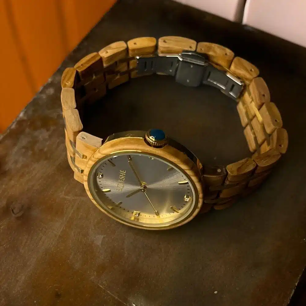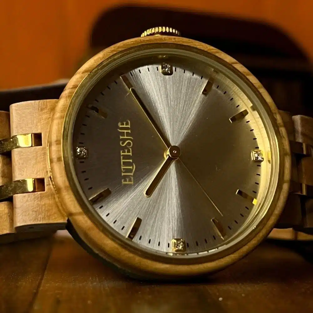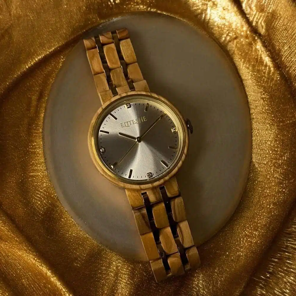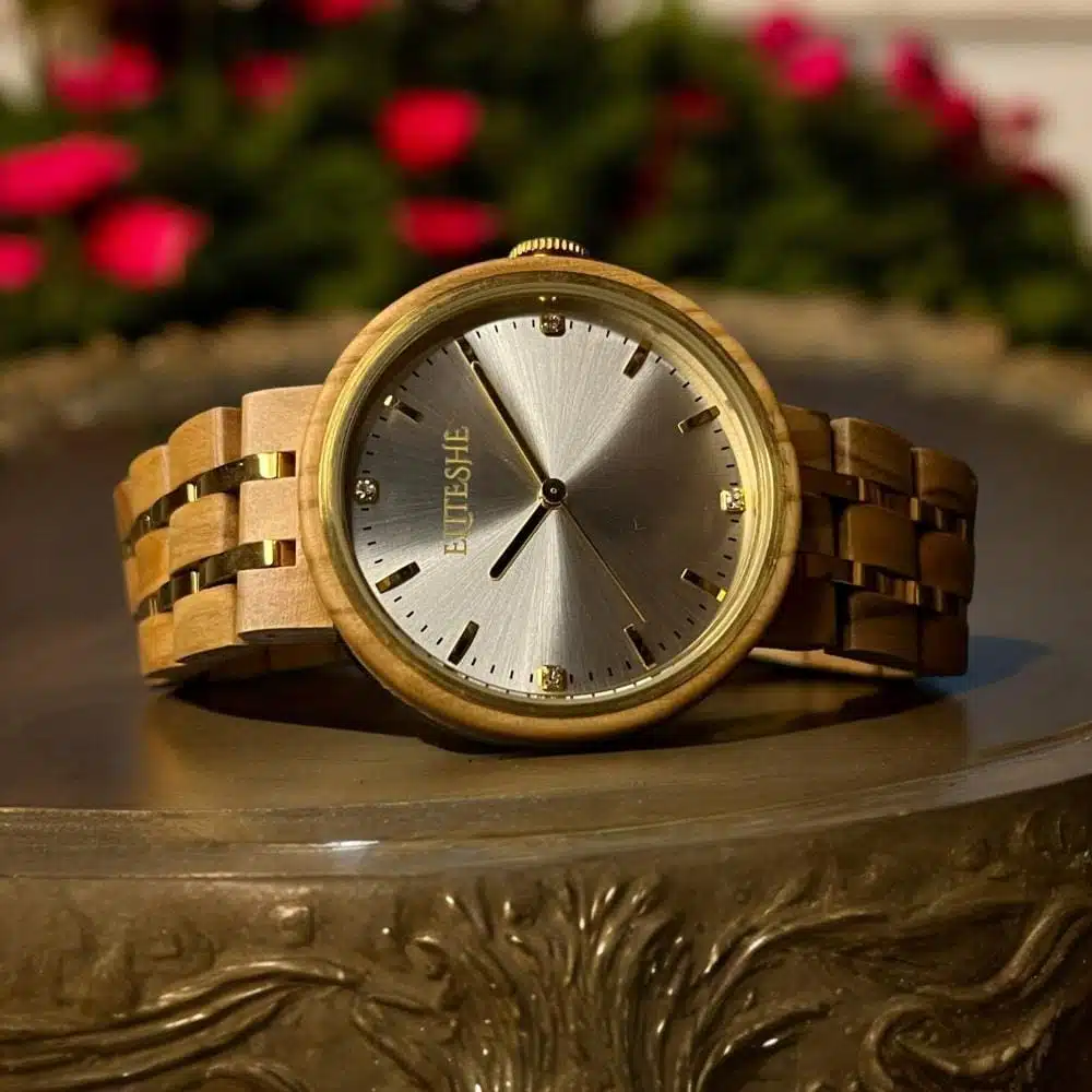 تتميز ساعة “كلاسيك نارسيسيز” النسائية بأنها تجمع بين التصميم والخامة الخشبية الكلاسيكية المصنوعة من خشب الأبانوس وبميناء مرصع بأحجار الزيركون وبعقاربها الذهبية ، وتأتي بحزام مصنوع من الخشب المستدام ومدعم بفواصل فولاذية مطلية باللون الذهبي لتضفي للساعة جمال واناقة