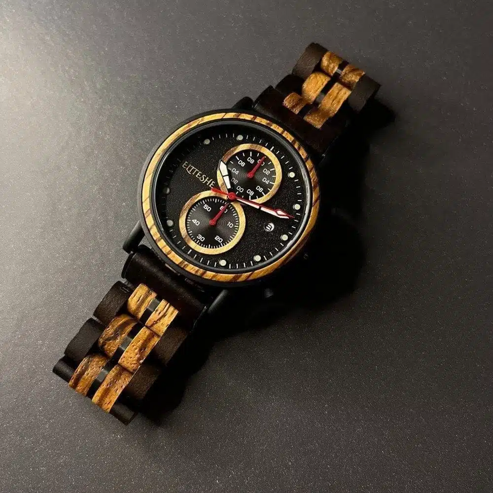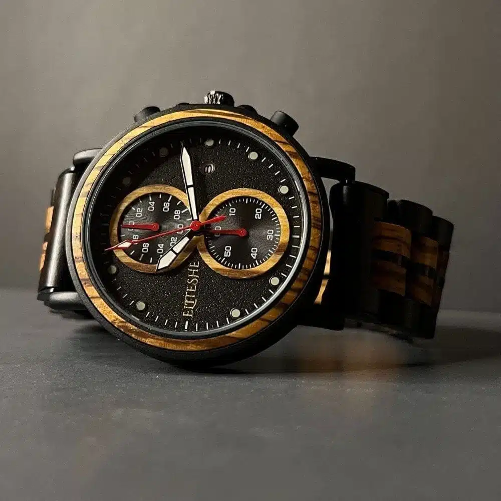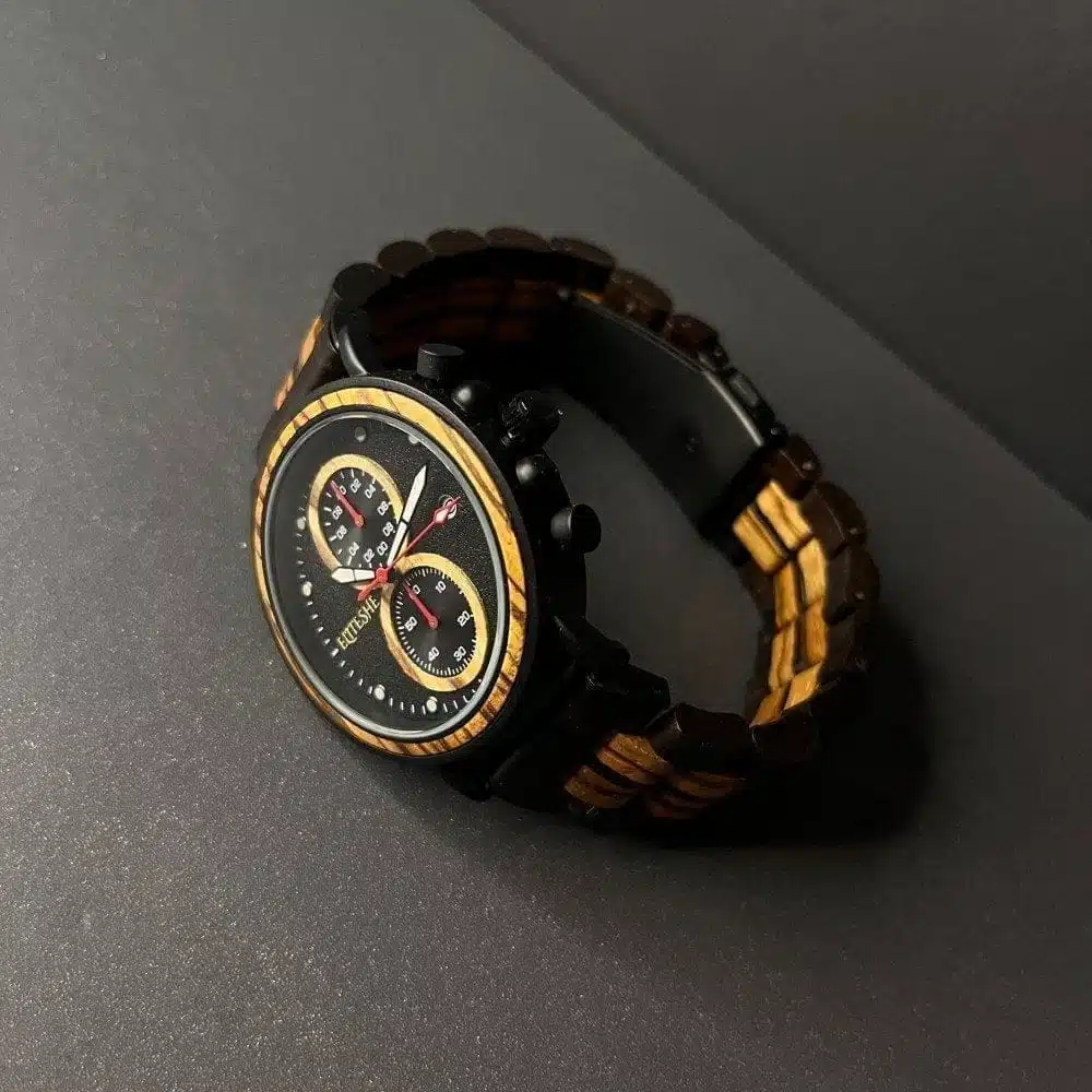 ساعة لايت جاينت الخشبية وتجمع مكوناتها بين الفولاذ المقاوم للصدأ وبين أجود أنواع الخشب. وتتميز ساعات “جاينت” بقطرها الذي يبلغ 44 ملم وخاصية الكرونوغراف الأنيق والفاخر . وتتمتع هذه الساعة بميناء بعدة الوان مع حزامها المصنوع يدويًا من الخشب الطبيعي الفاخر مع مفاصل فولاذية مقاومة للصدأ.