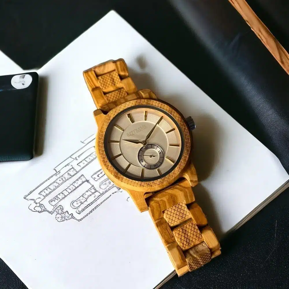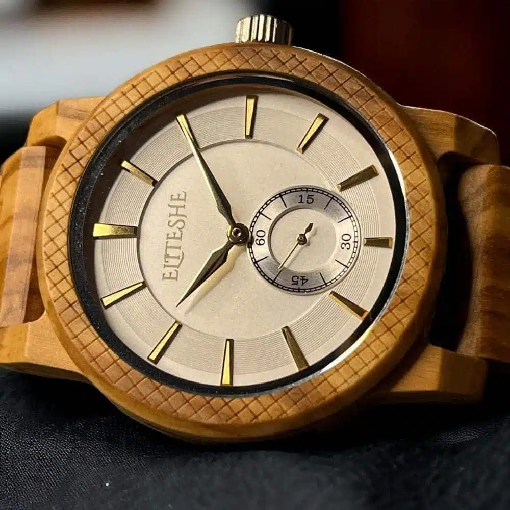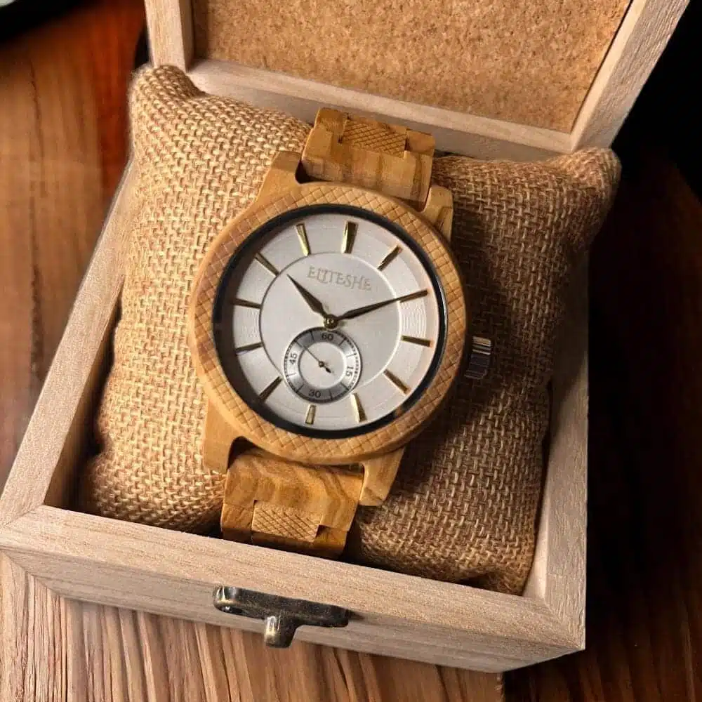 ساعة لايت نيوم الخشبية وهي أحد إصدارت “نيوم” الرجالية الخشبية والتي تتميز بتصميم يجمع بين الساعة العصرية والساعة الكلاسيكية وتأتي بمحرك كوارتز ياباني الصنع المقاوم للماء ، وهي مصممة خصيصاً لتضع على شخصيتك لمسات باهرة من الفخامة والأناقة ، تأتي ساعة وايت نيوم الخشبية بقرص دائري ذو مقاس 43mm وسماكة 11.5mm وبحزام خشبي مصنوع من اجود انواع الخشب الإستوائي والذي يتمتع بالقوة والمتانة لترافقك في جميع الأوقات والمناسبات .. إقتنيها اليوم !!