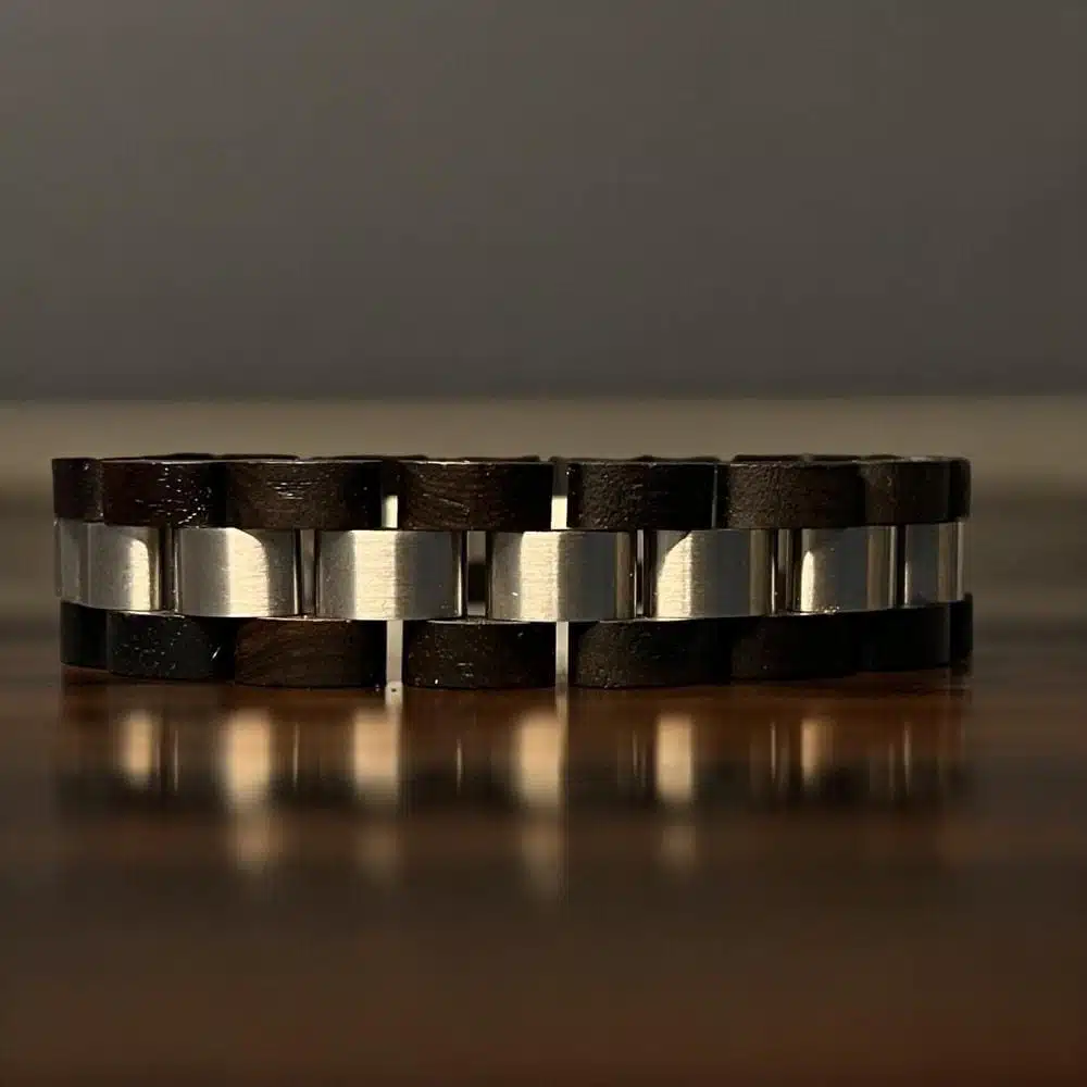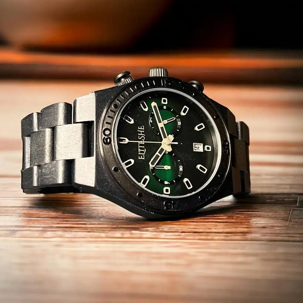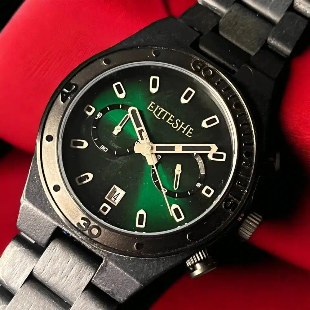 مجموعة ساعة خشبية جرين روك مان مع إسورة خشب الرجالية مثالية للمناسبات غير الرسمية والرسمية، هذه الحزمة مثالية للرجل المهتم بالبيئة والذي يقدر الحرفية والفردية. تميز عن الآخرين بمجموعة جرين روك مان الرجالية من متجر إيليتشي واعرض ذوقك الفريد في الأناقة دون عناء.