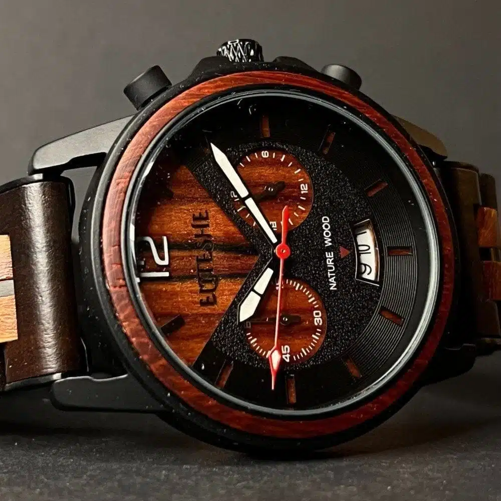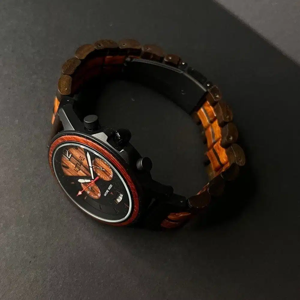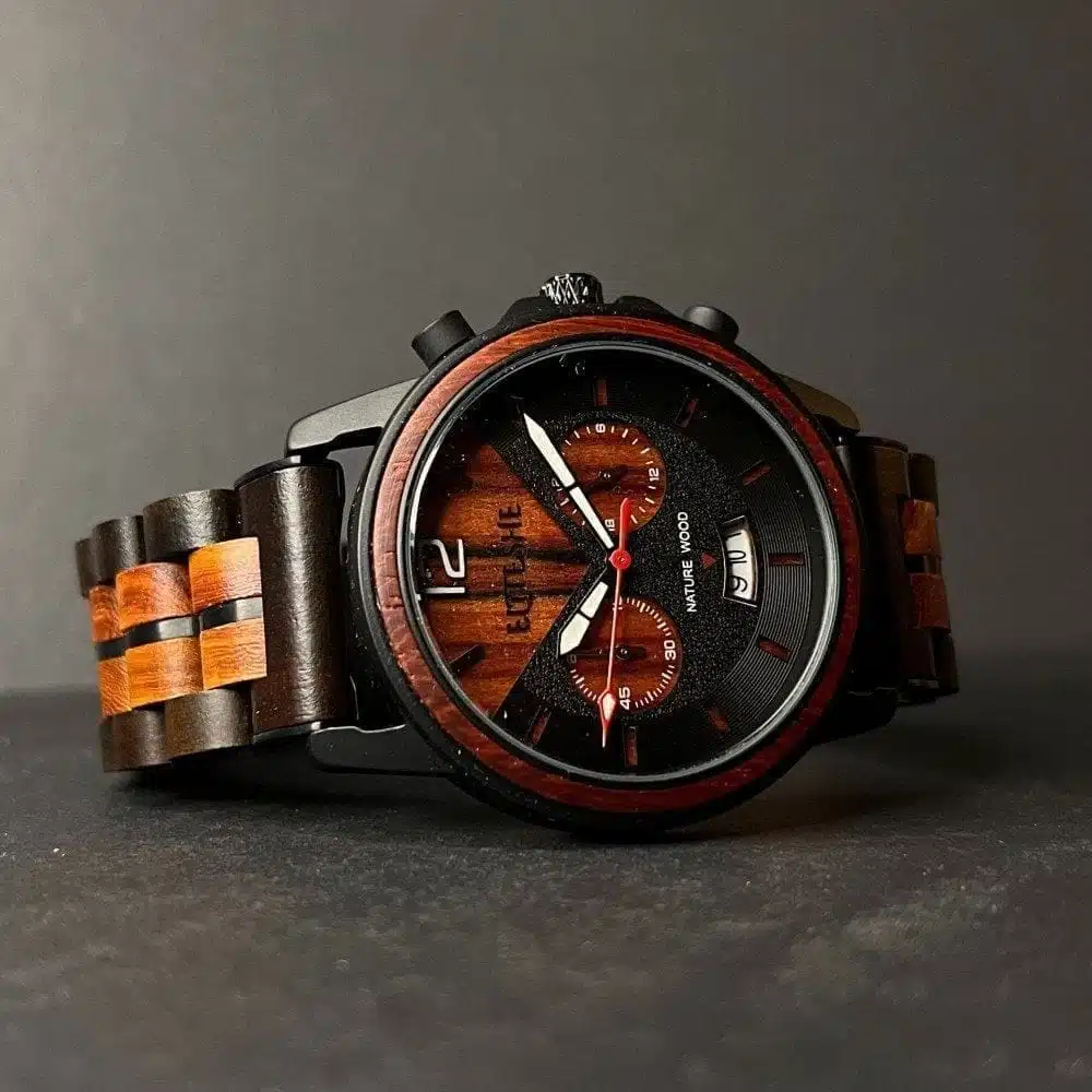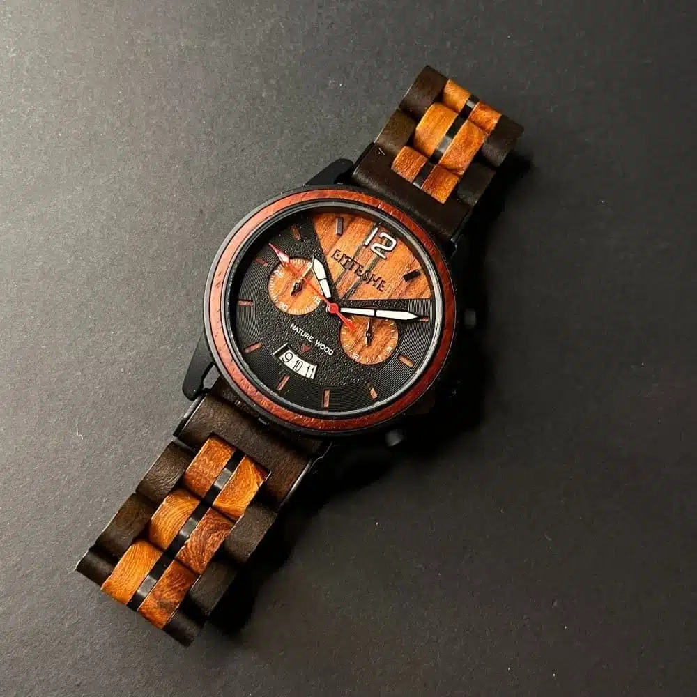 ساعة ناتشور جاينت الخشبية وتجمع مكوناتها بين الفولاذ المقاوم للصدأ وبين أجود أنواع الخشب. وتتميز ساعات “جاينت” بقطرها الذي يبلغ 44 ملم وخاصية الكرونوغراف الأنيق والفاخر . وتتمتع هذه الساعة بميناء بعدة الوان مع حزامها المصنوع يدويًا من الخشب الطبيعي الفاخر مع مفاصل فولاذية مقاومة للصدأ.
