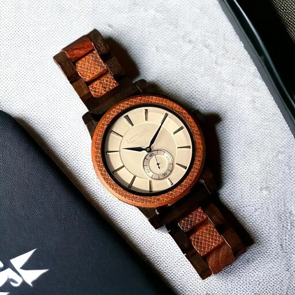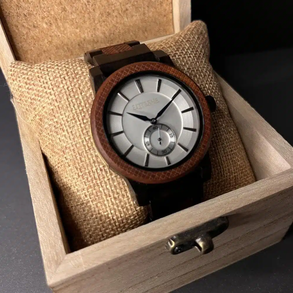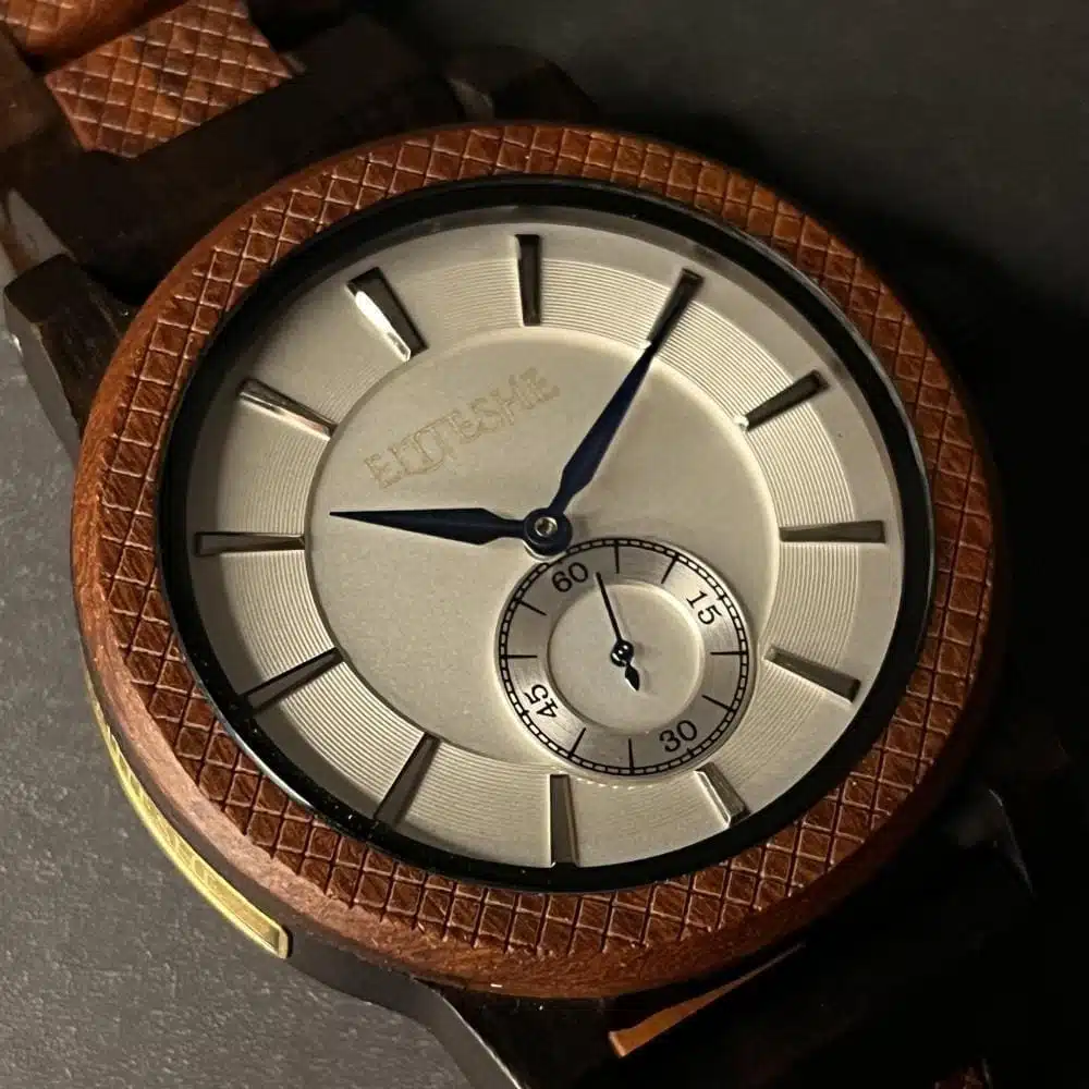 ساعة وايت نيوم الخشبية وهي أحد إصدارت “نيوم” الرجالية الخشبية والتي تتميز بتصميم يجمع بين الساعة العصرية والساعة الكلاسيكية وتأتي بمحرك كوارتز ياباني الصنع المقاوم للماء ، وهي مصممة خصيصاً لتضع على شخصيتك لمسات باهرة من الفخامة والأناقة ، تأتي ساعة وايت نيوم الخشبية بقرص دائري ذو مقاس 43mm وسماكة 11.5mm وبحزام خشبي مصنوع من اجود انواع الخشب الإستوائي والذي يتمتع بالقوة والمتانة لترافقك في جميع الأوقات والمناسبات .. إقتنيها اليوم !!